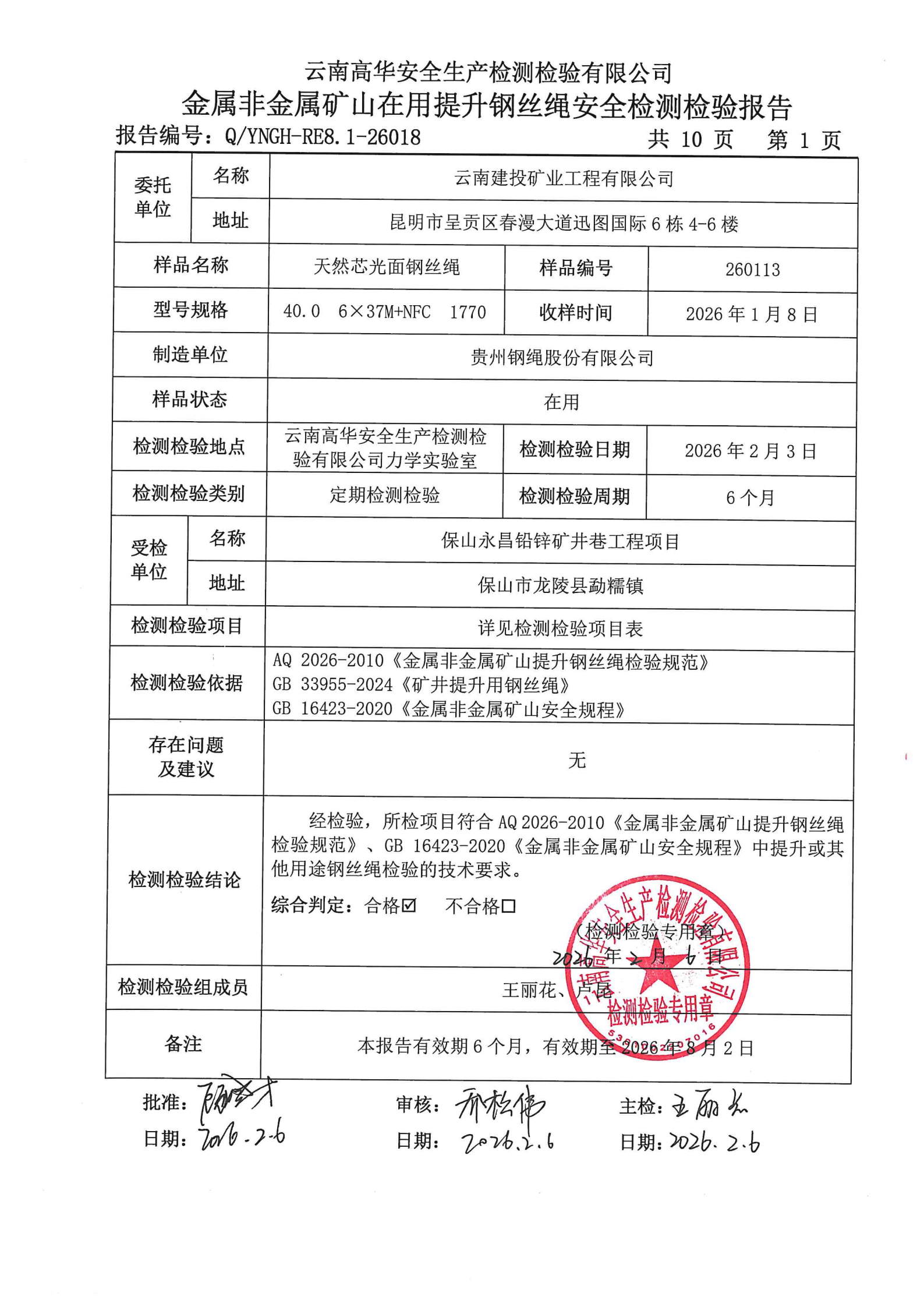 金属非金属矿山在用提升钢丝绳安全检测检验报告