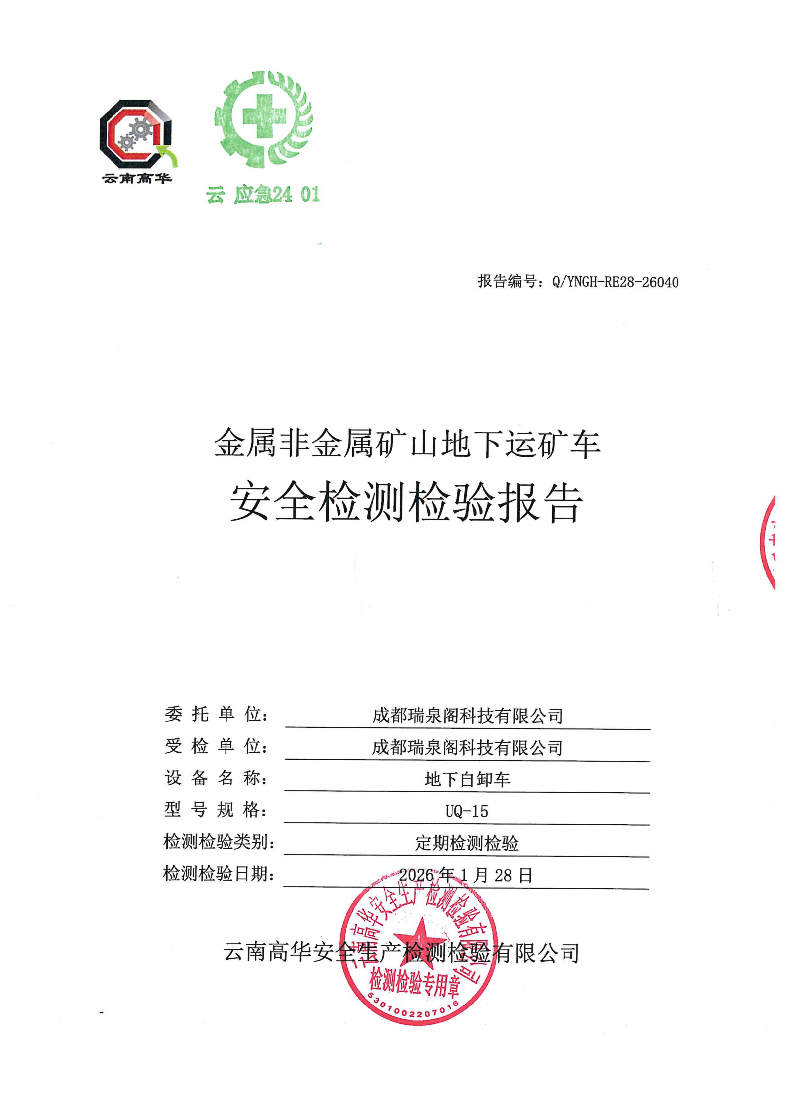 金属非金属露天矿山在用矿用自卸汽车安全检测检验报告