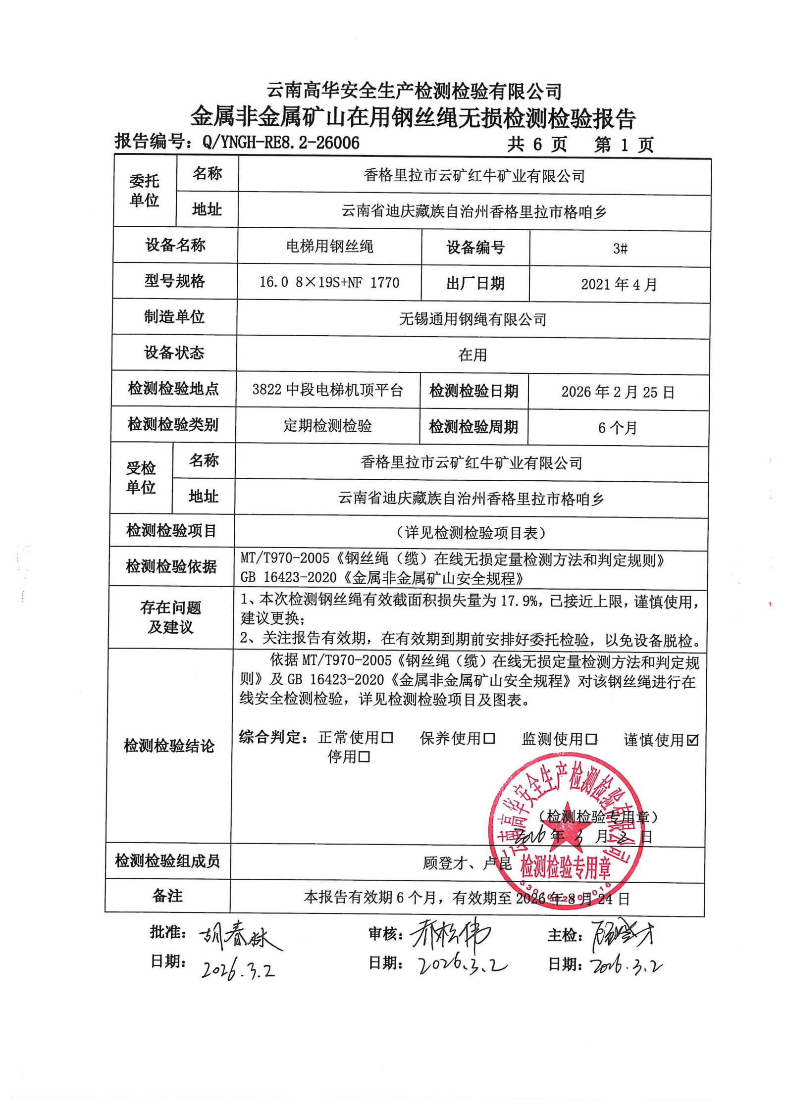 金属非金属矿山在用钢丝绳无损检测检验报告