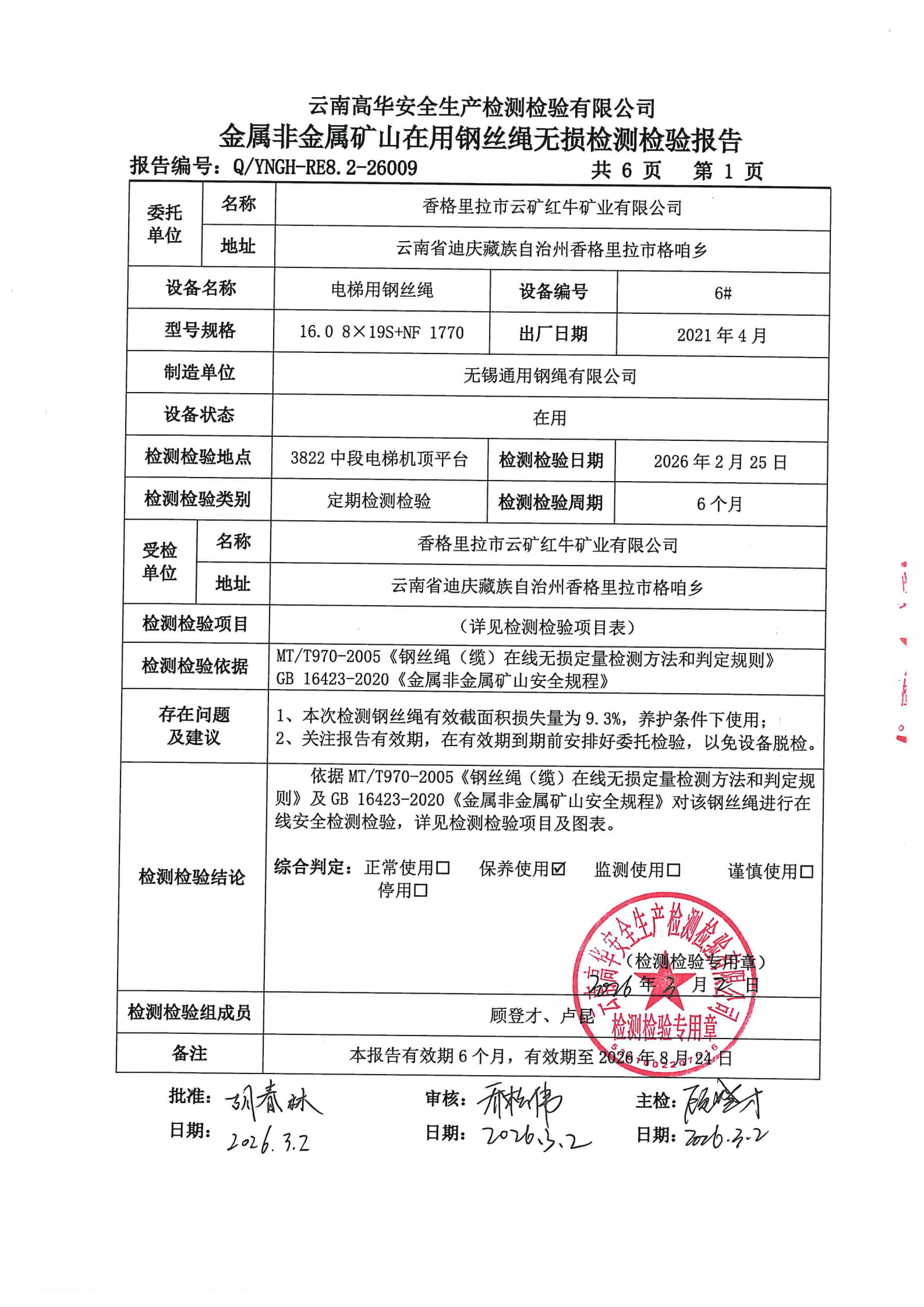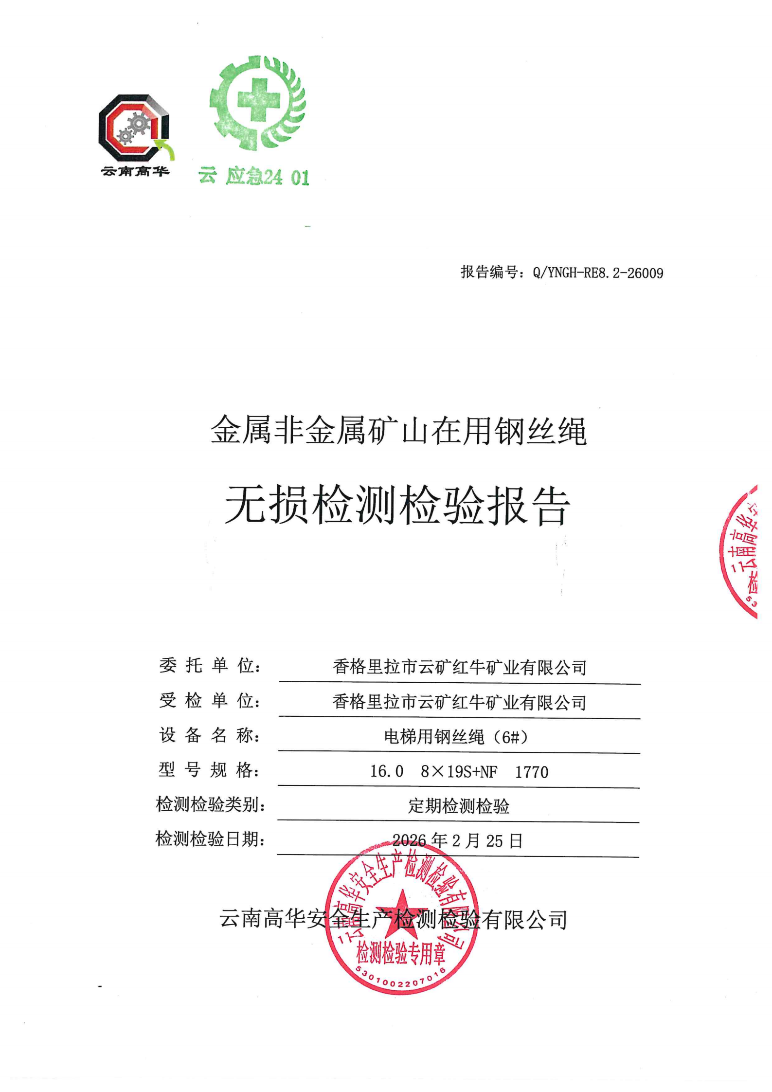 金属非金属矿山在用钢丝绳无损检测检验报告