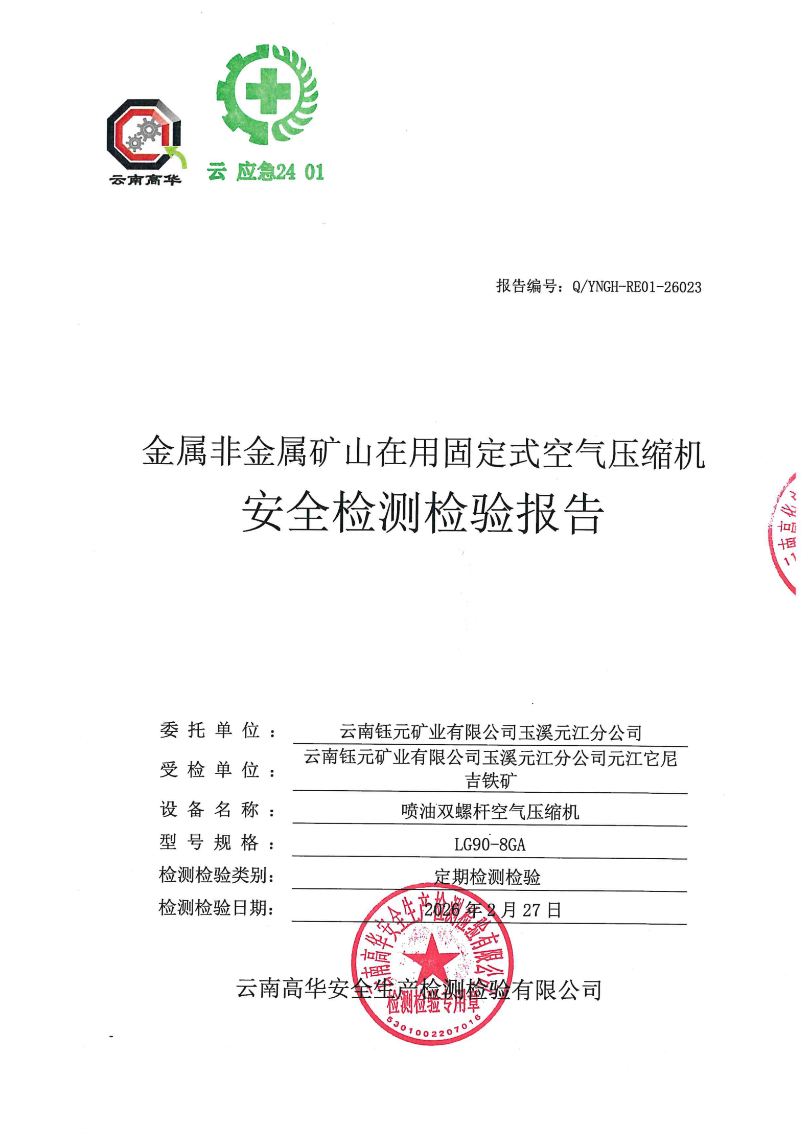 金属非金属矿山在用固定式空气压缩机安全检测检验报告
