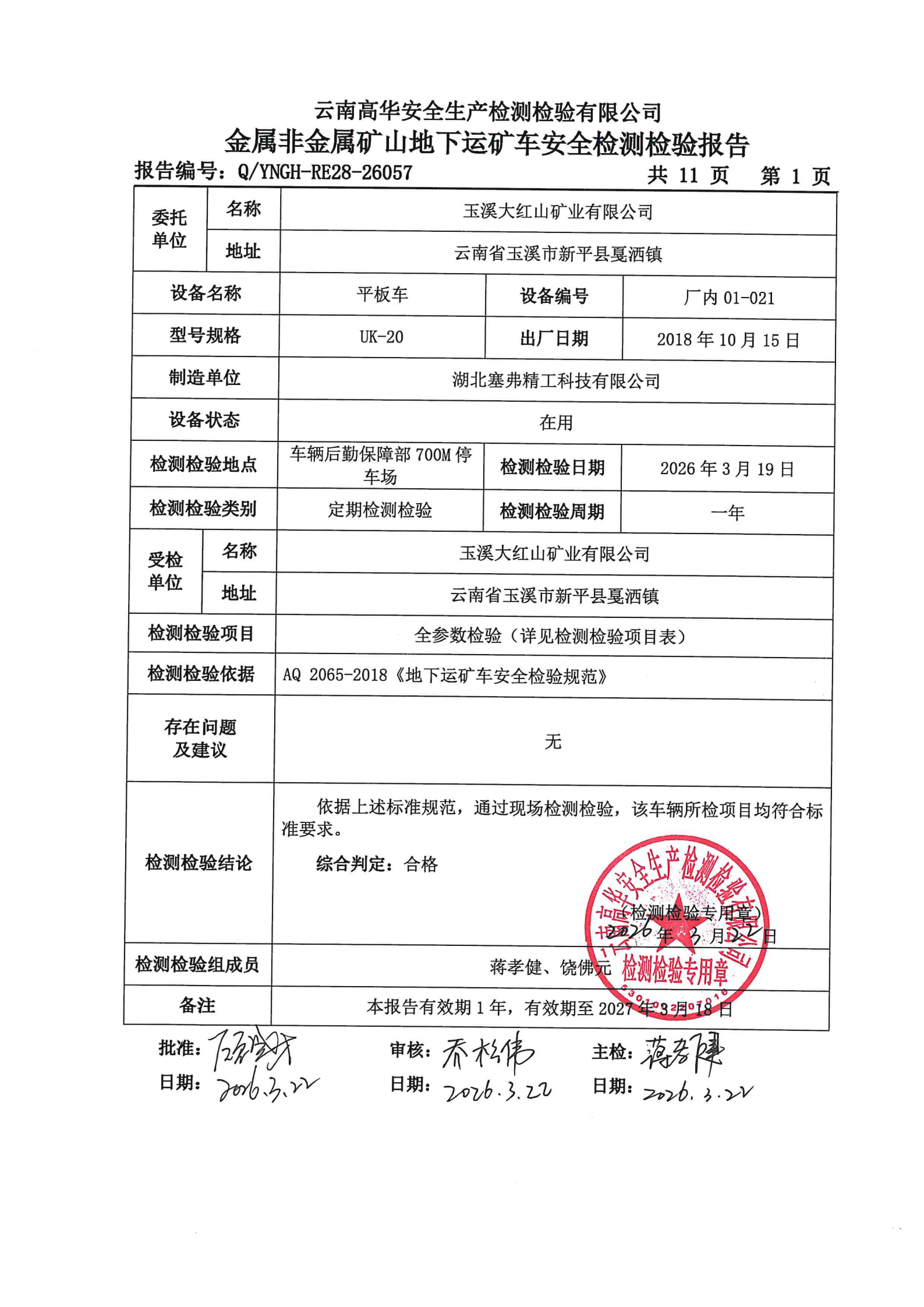 金属非金属矿山地下运矿车安全检测检验报告