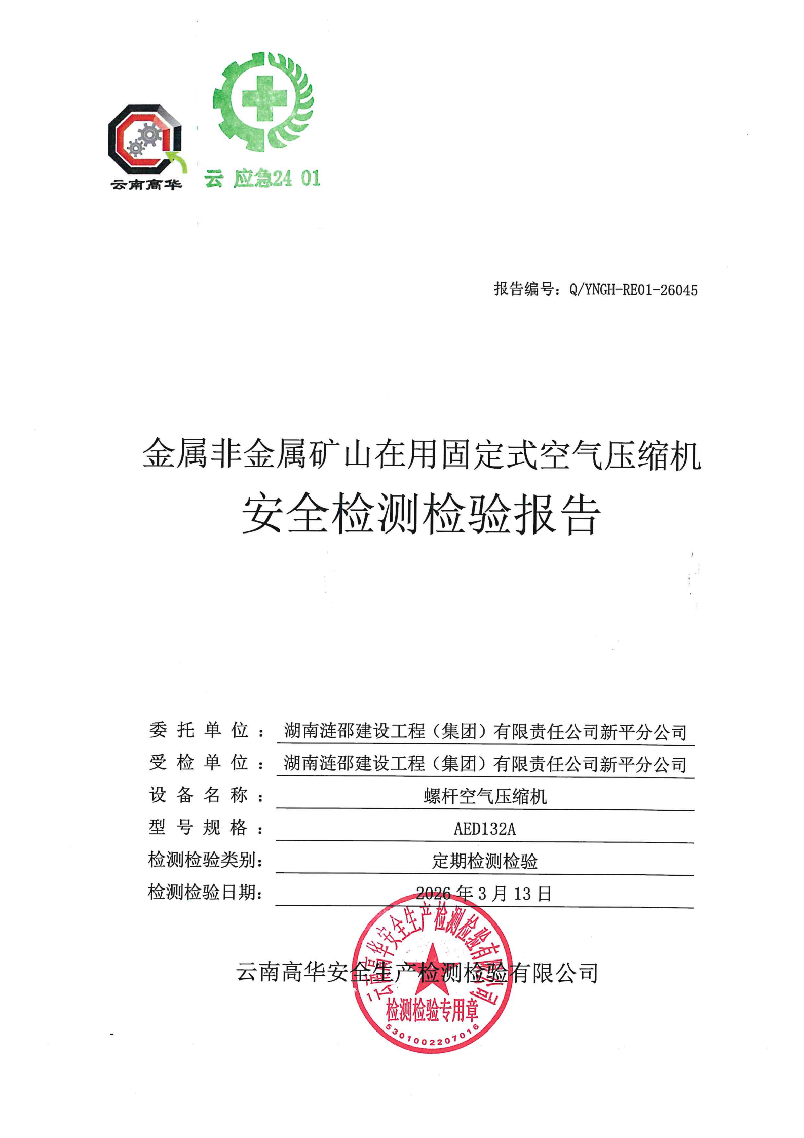 金属非金属矿山在用固定式空气压缩机安全检测检验报告