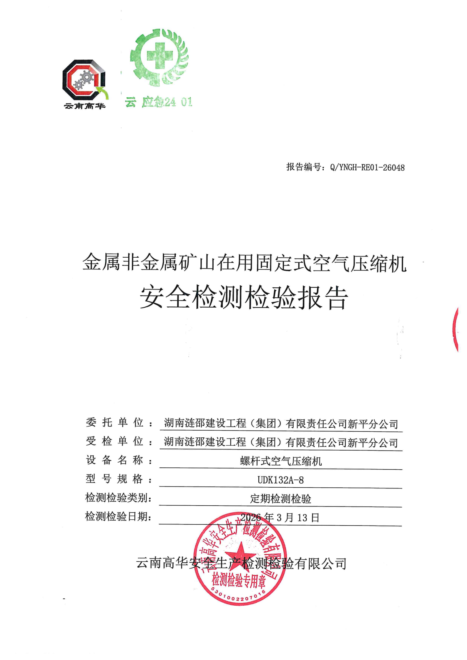 金属非金属矿山在用固定式空气压缩机安全检测检验报告