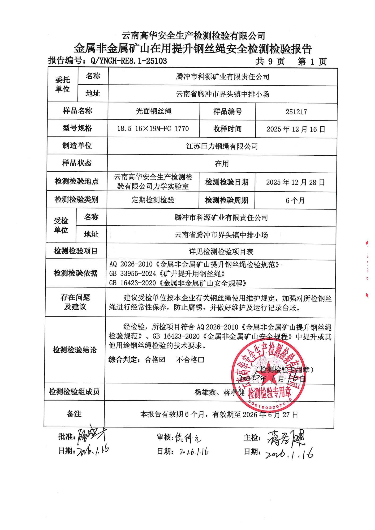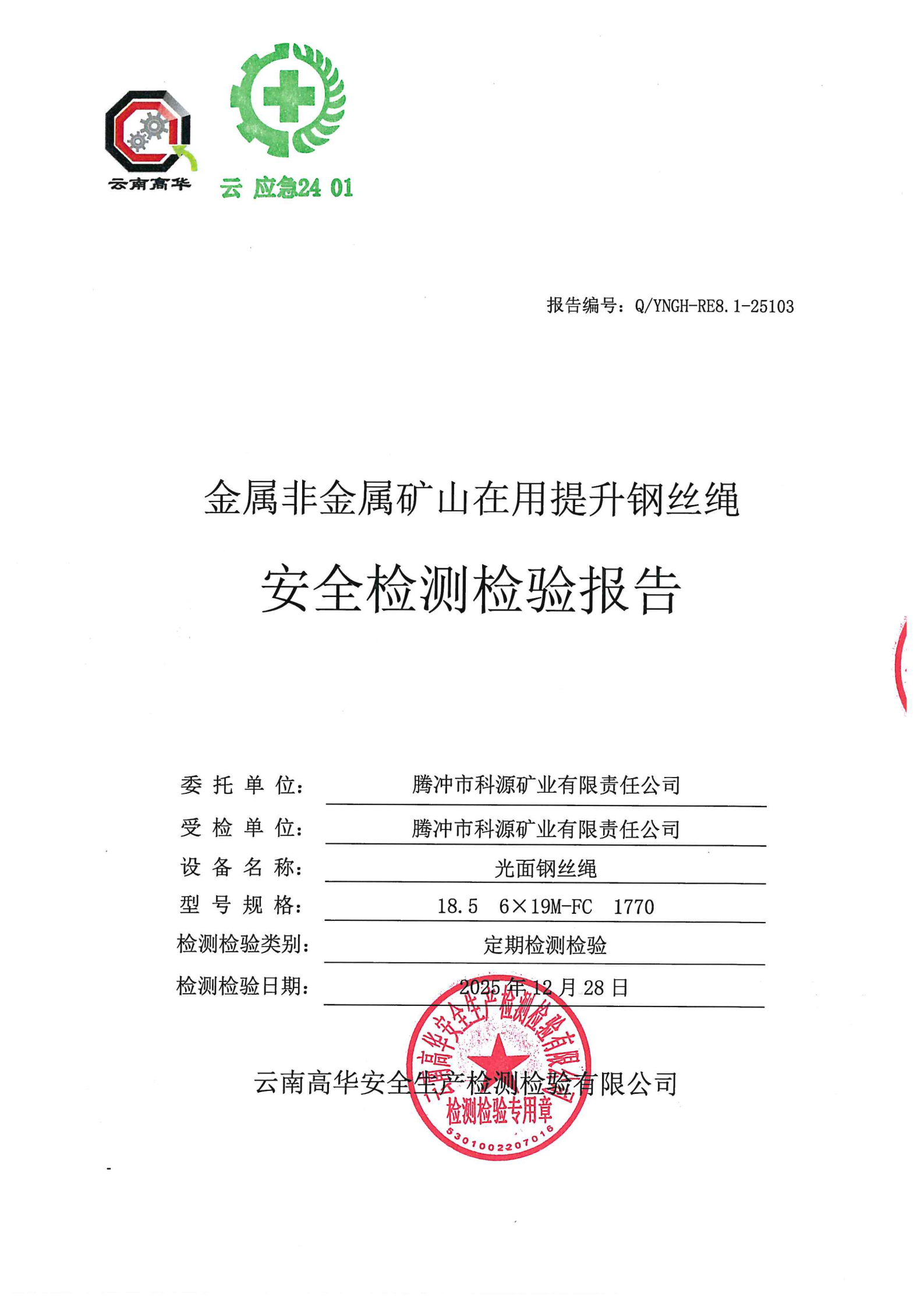 金属非金属矿山在用提升钢丝绳安全检测检验报告