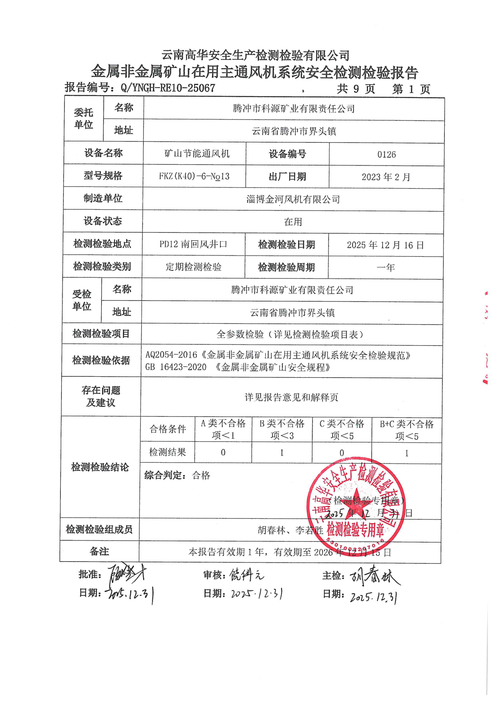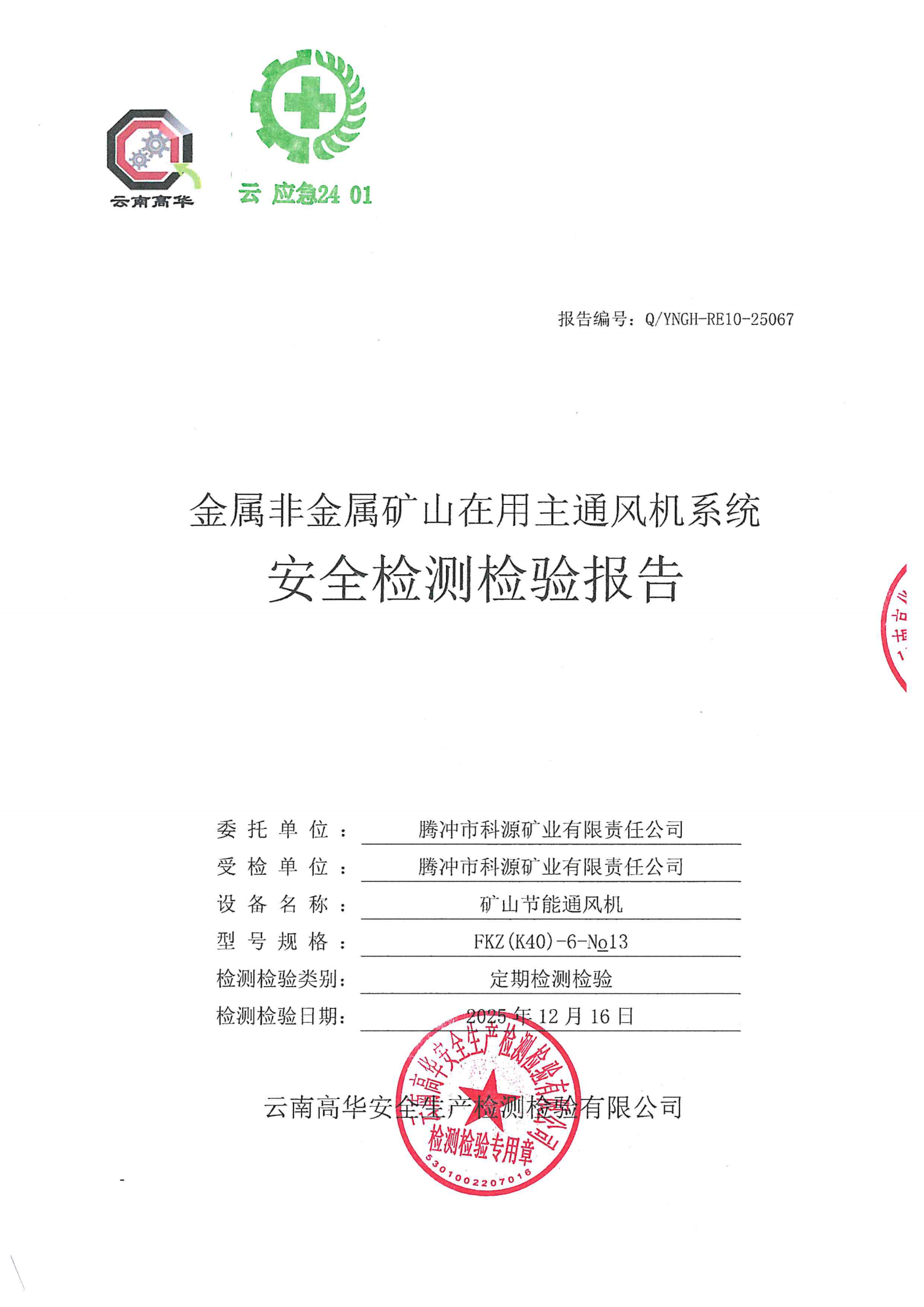 金属非金属矿山在用主通风机系统安全检测检验报告