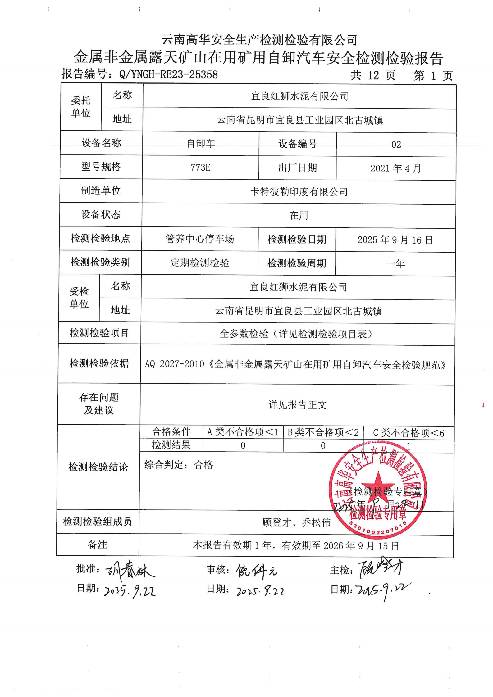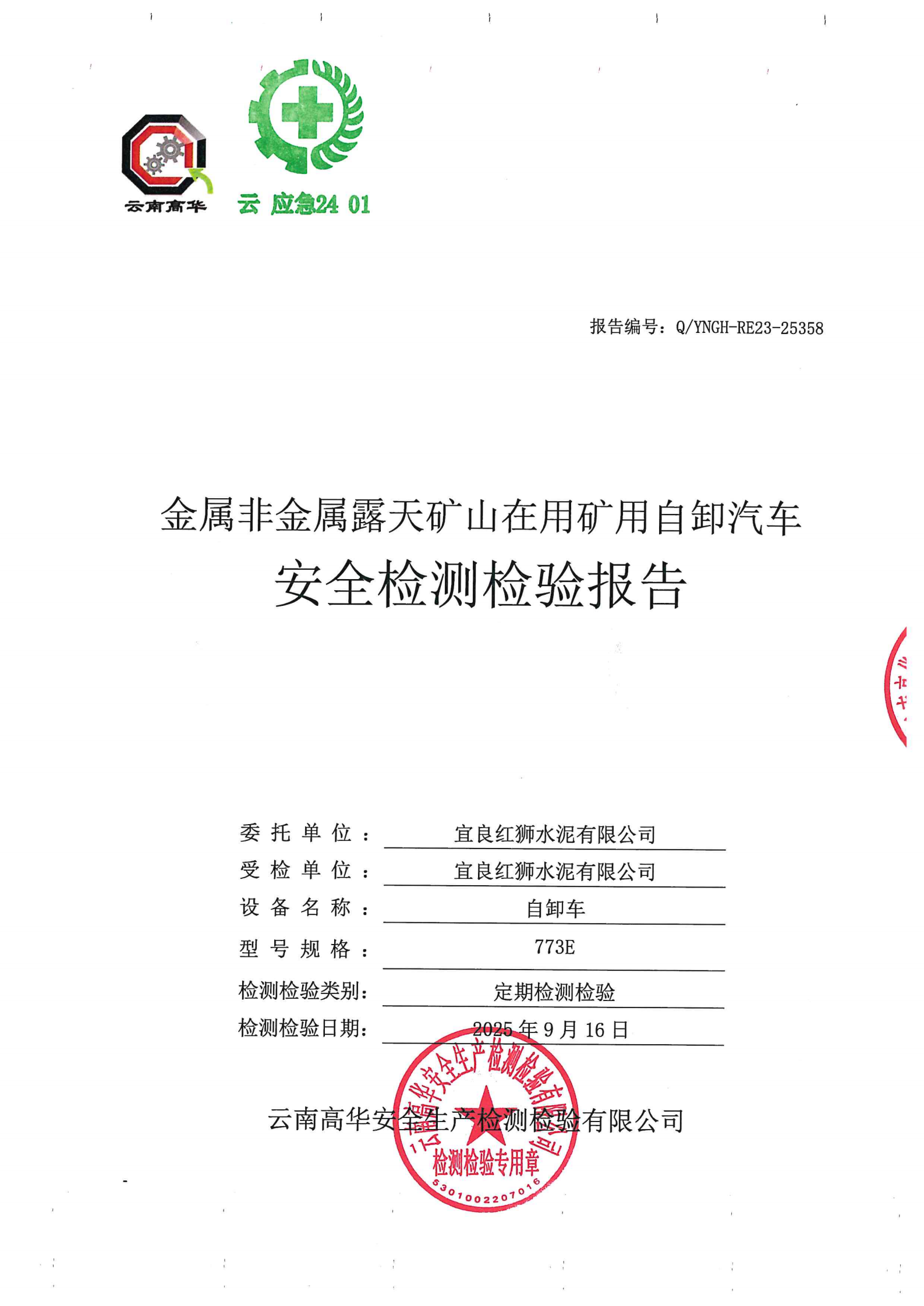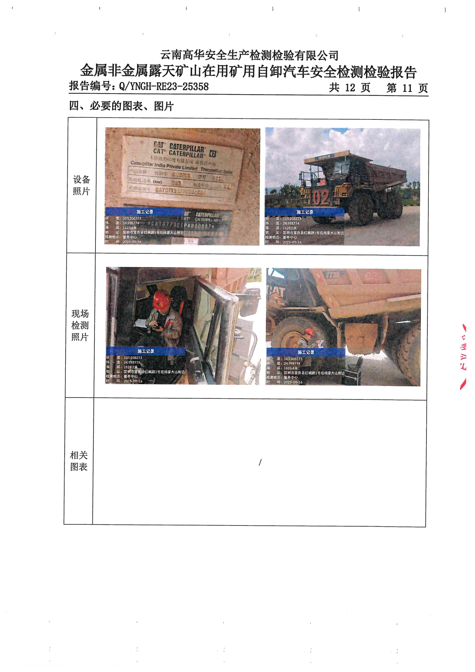 金属非金属露天矿山在用矿用自卸汽车安全检测检验报告
