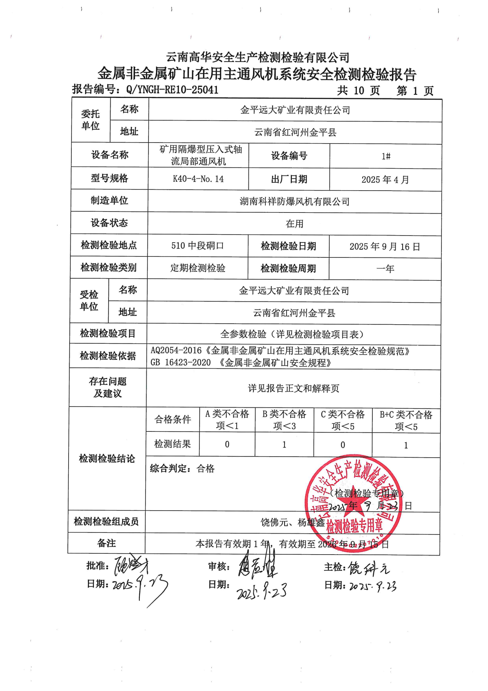 金属非金属矿山在用主通风机系统安全检测检验报告
