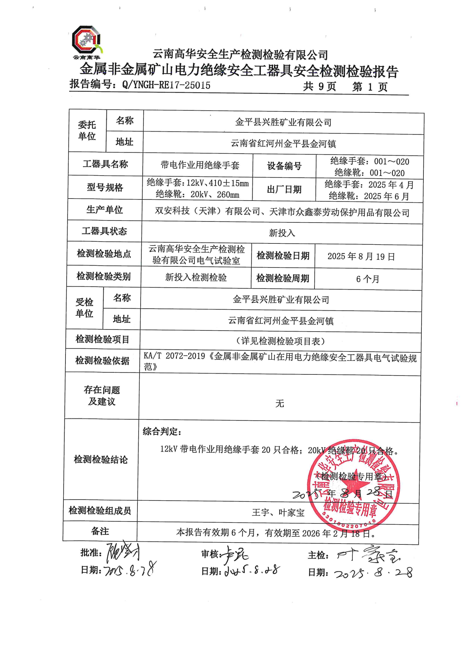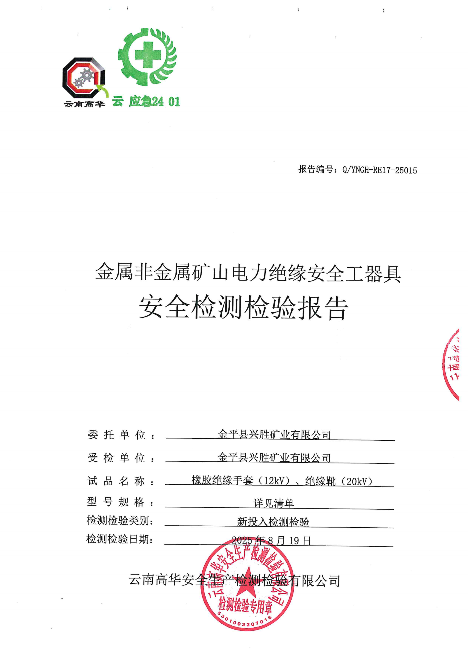 金属非金属矿山电力绝缘安全工器具安全检测检验报告