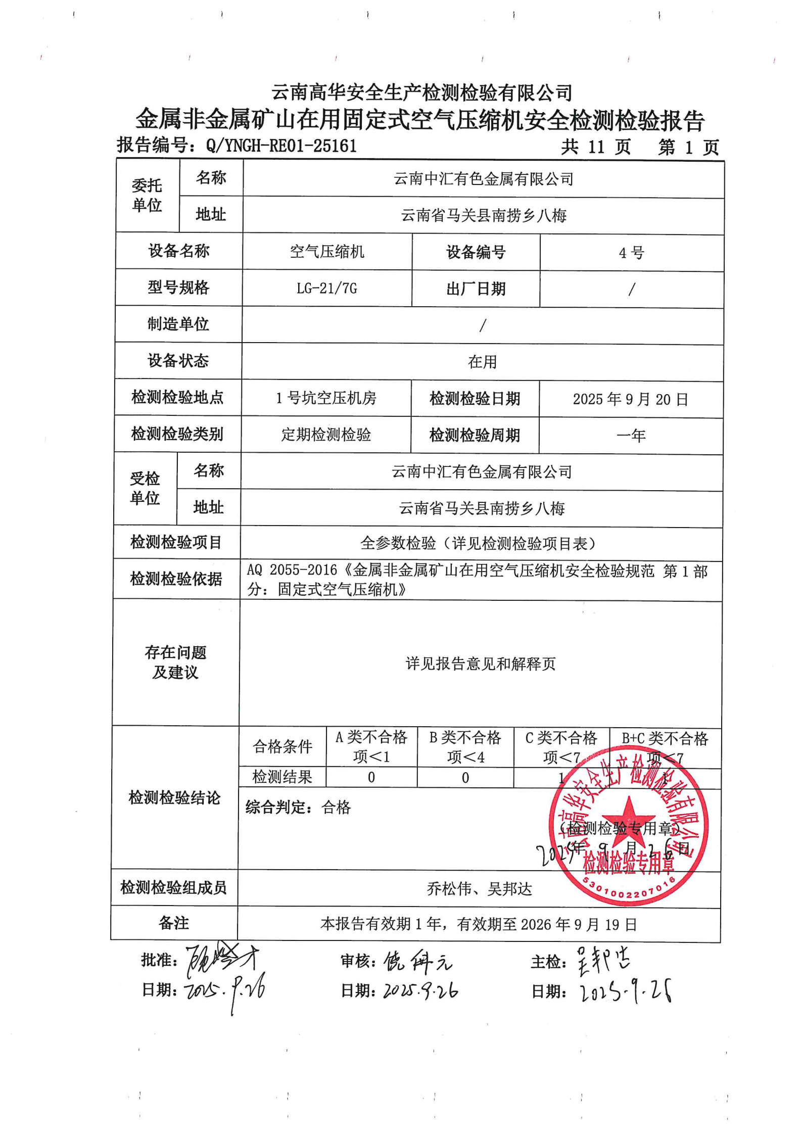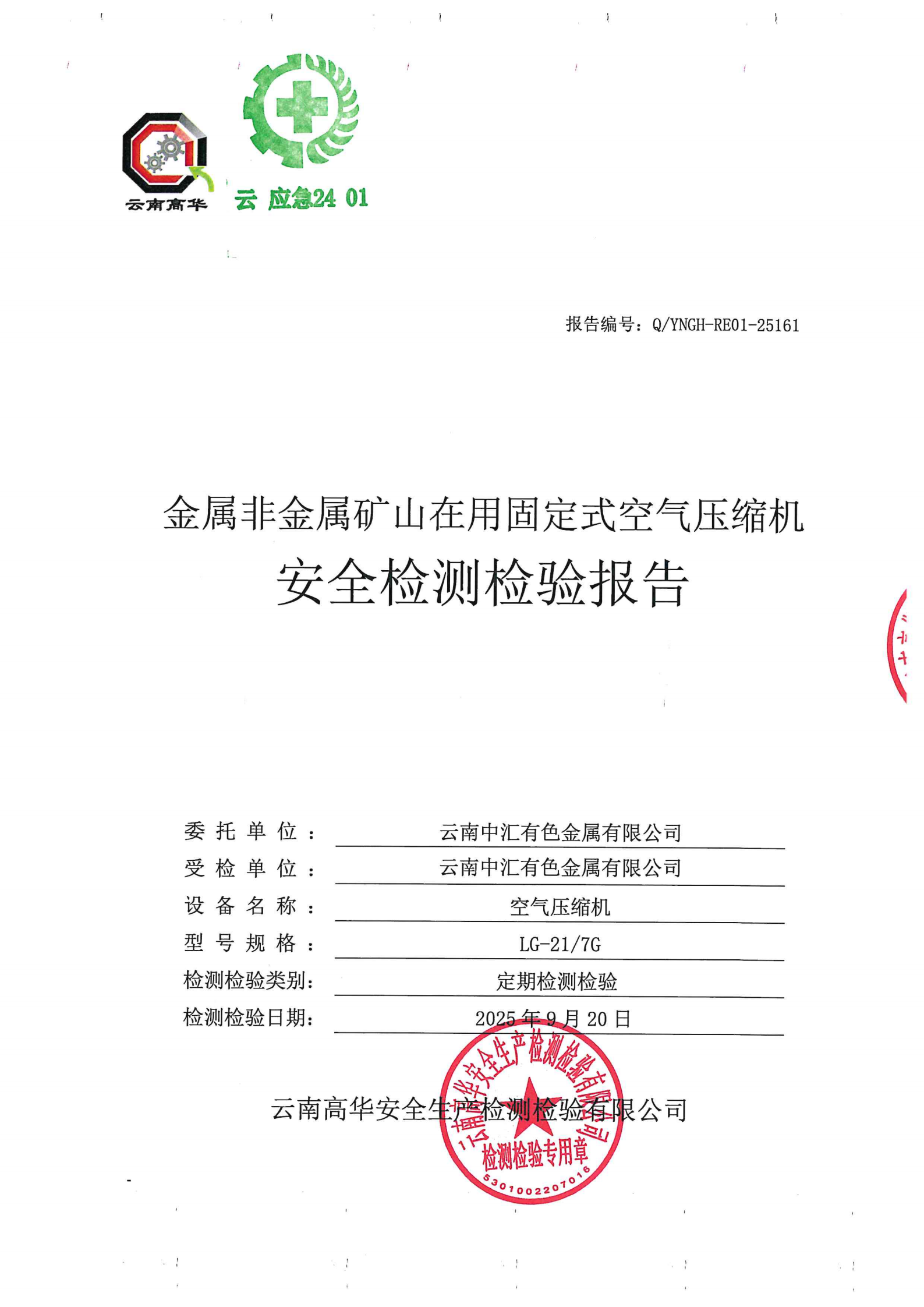 金属非金属矿山在用固定式空气压缩机安全检测检验报告