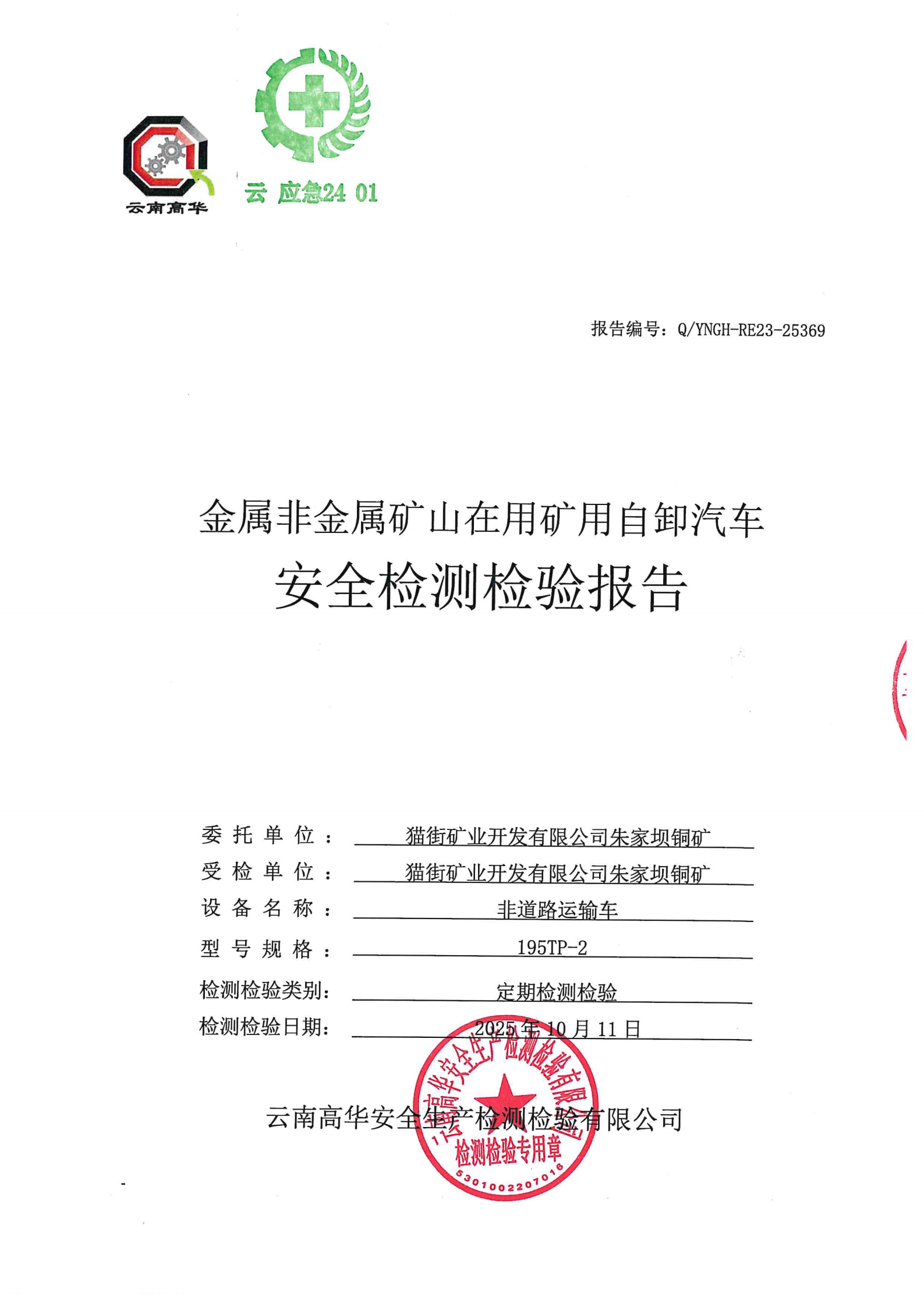 金属非金属矿山在用矿用自卸汽车安全检测检验报告
