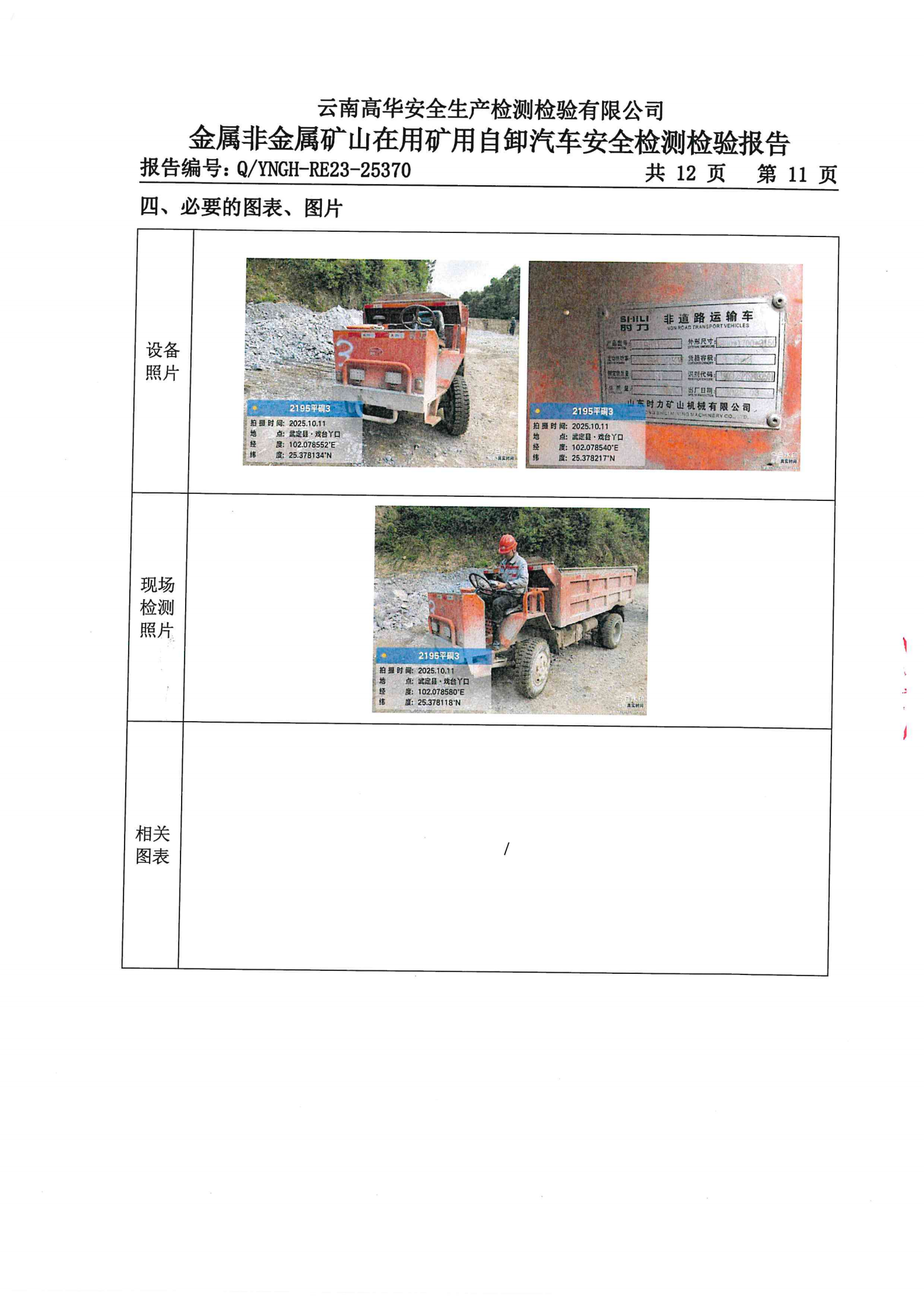金属非金属矿山在用矿用自卸汽车安全检测检验报告