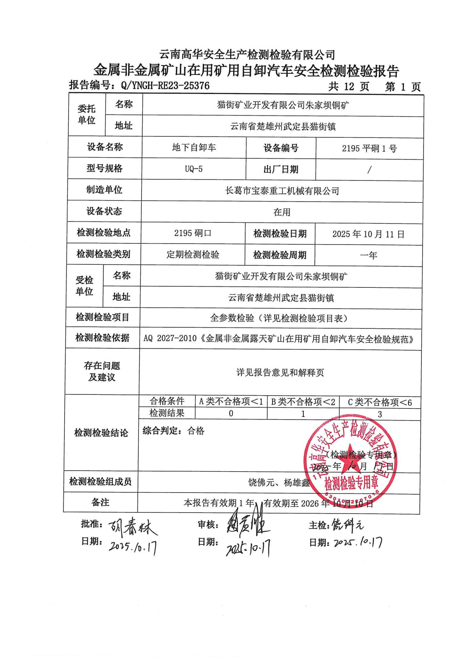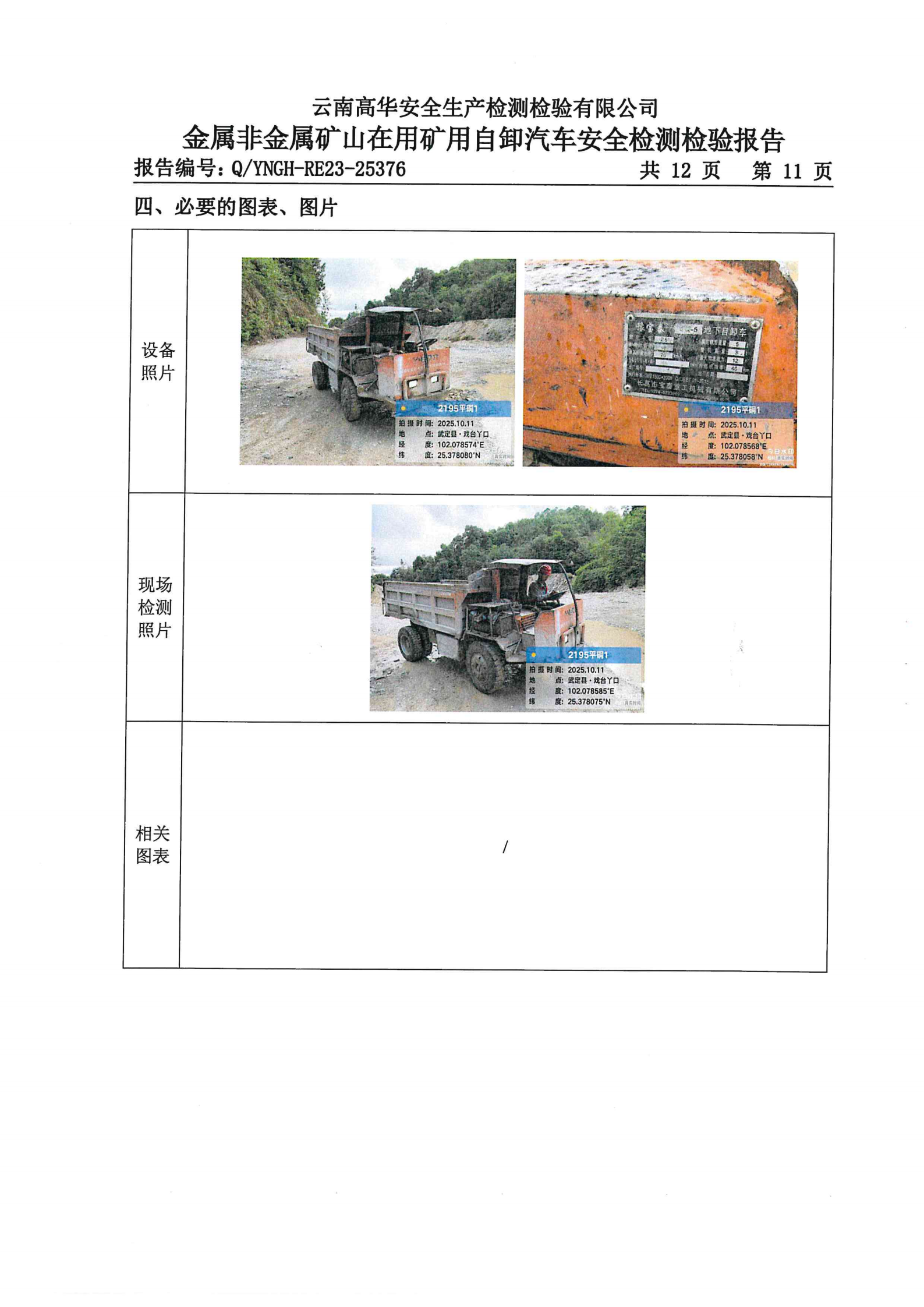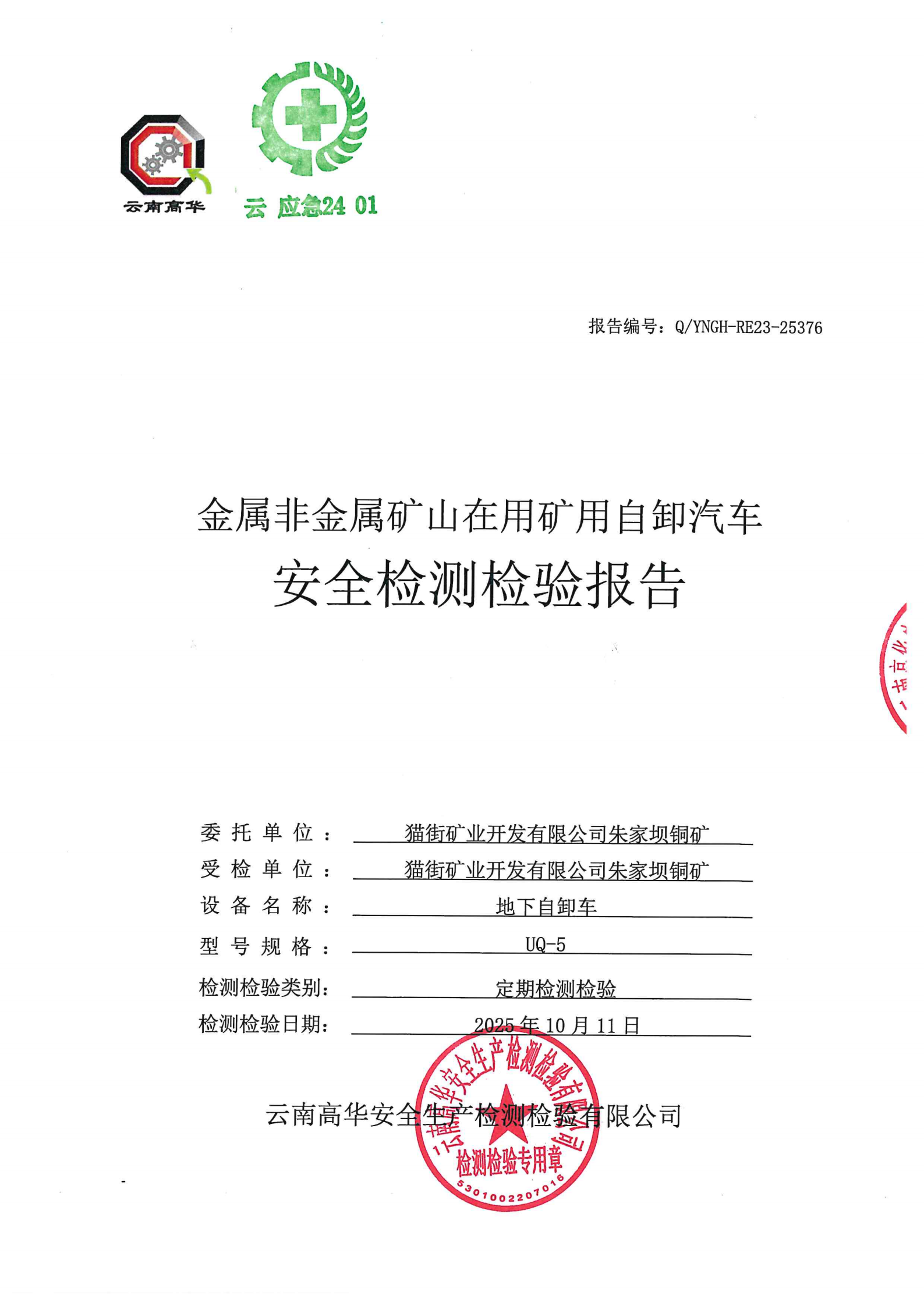 金属非金属矿山在用矿用自卸汽车安全检测检验报告