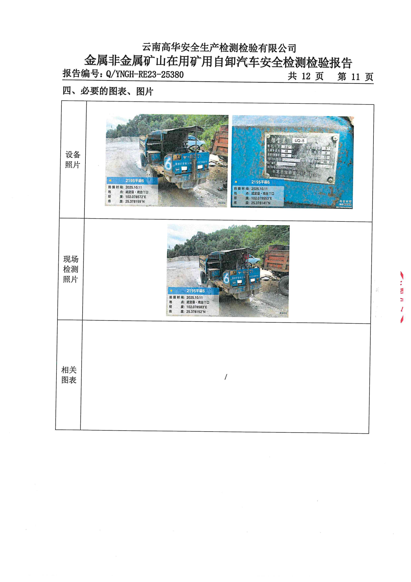 金属非金属矿山在用矿用自卸汽车安全检测检验报告