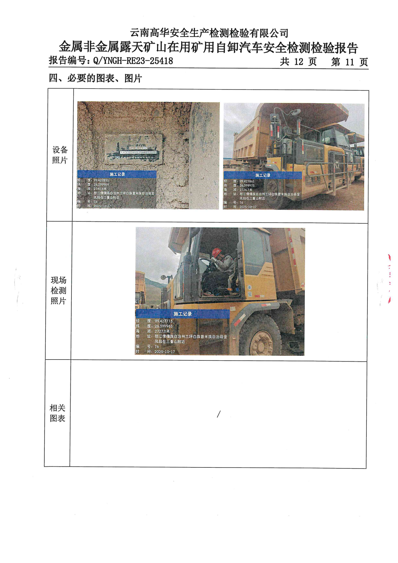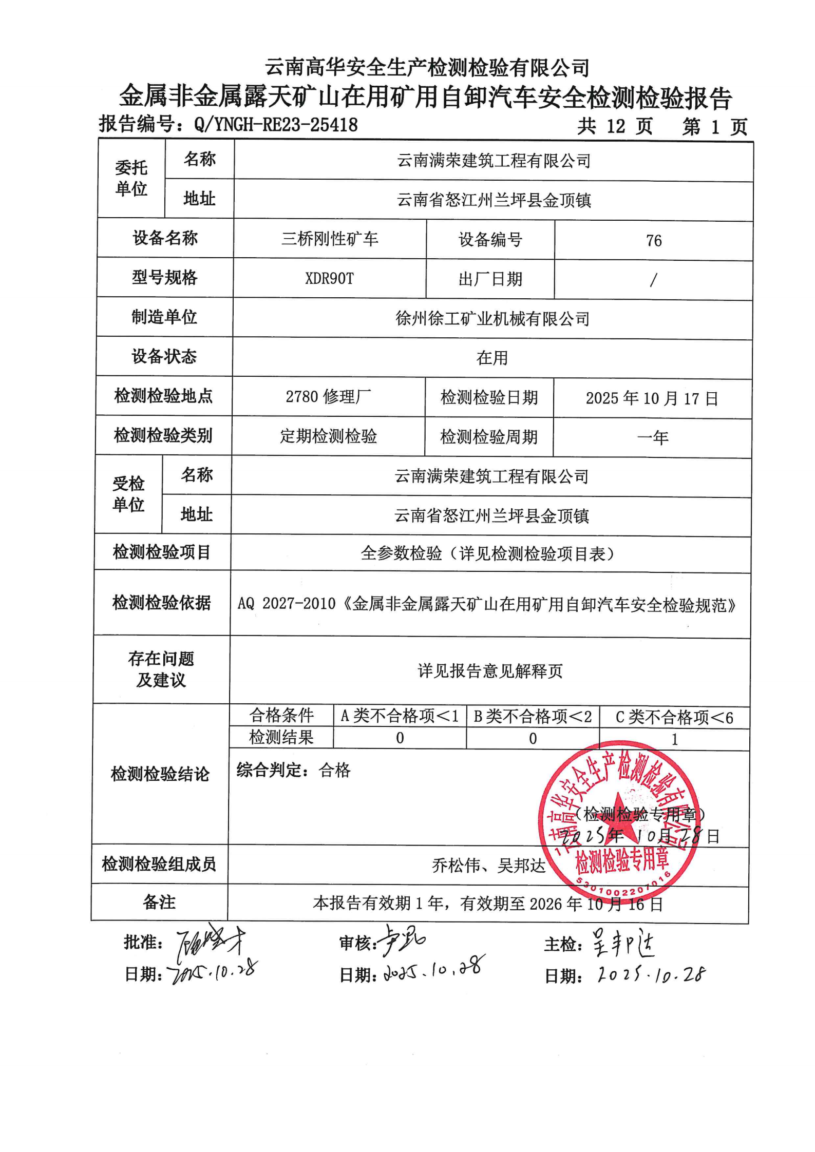 金属非金属露天矿山在用矿用自卸汽车安全检测检验报告