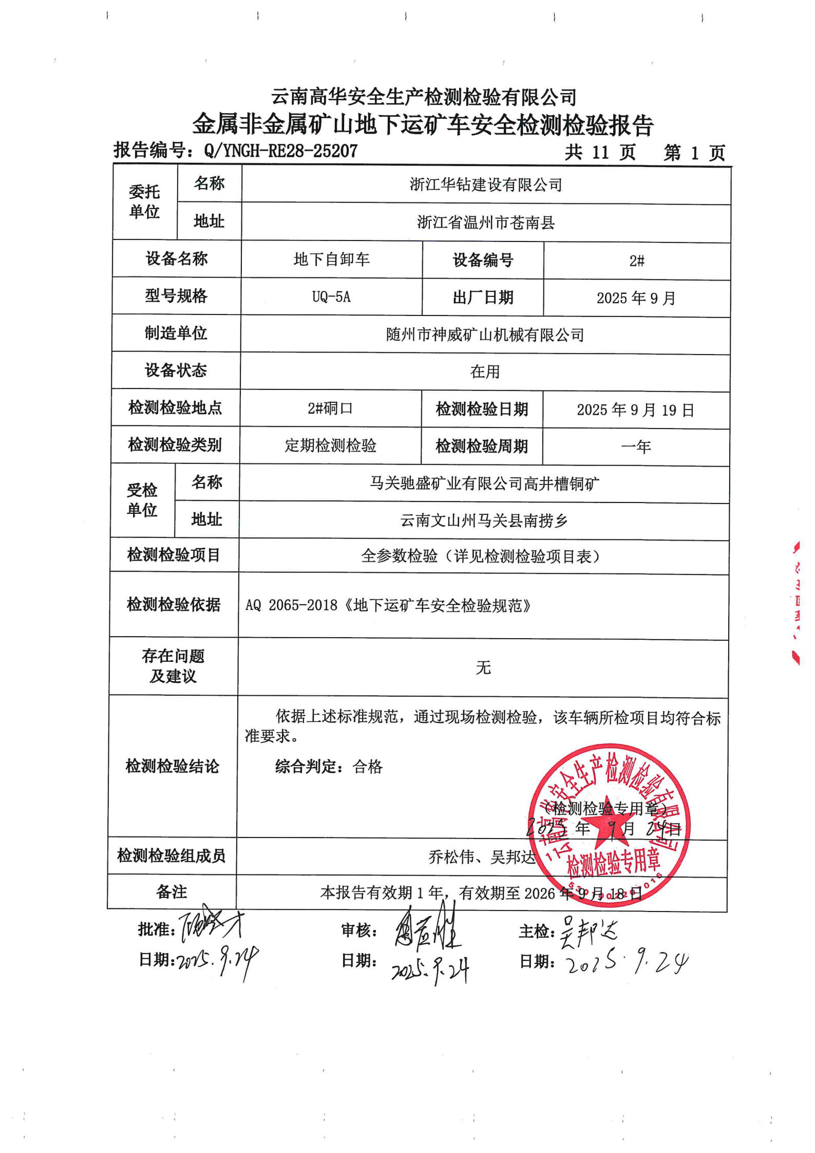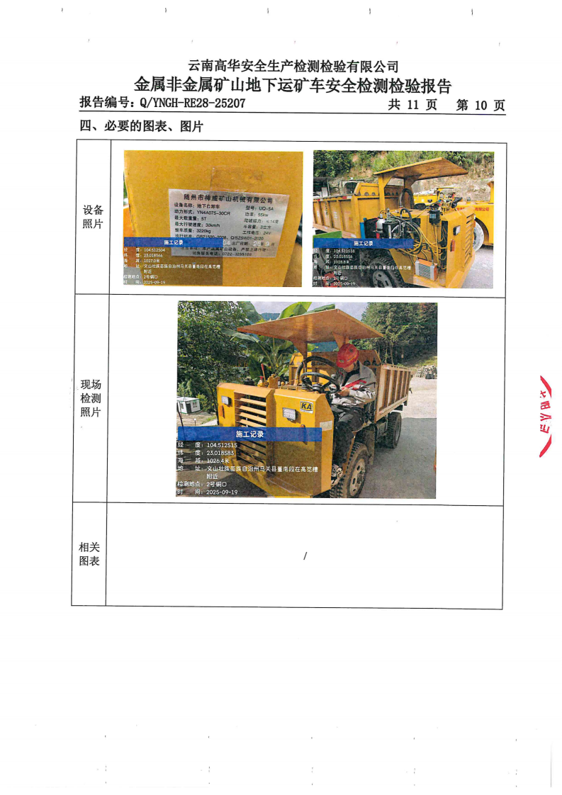 金属非金属矿山地下运矿车安全检测检验报告