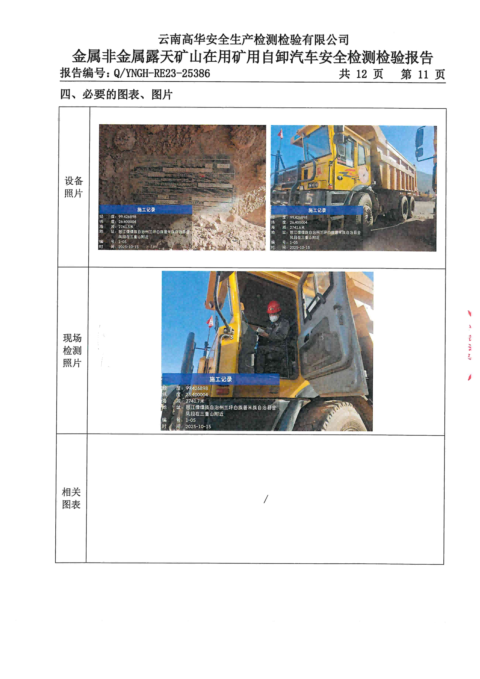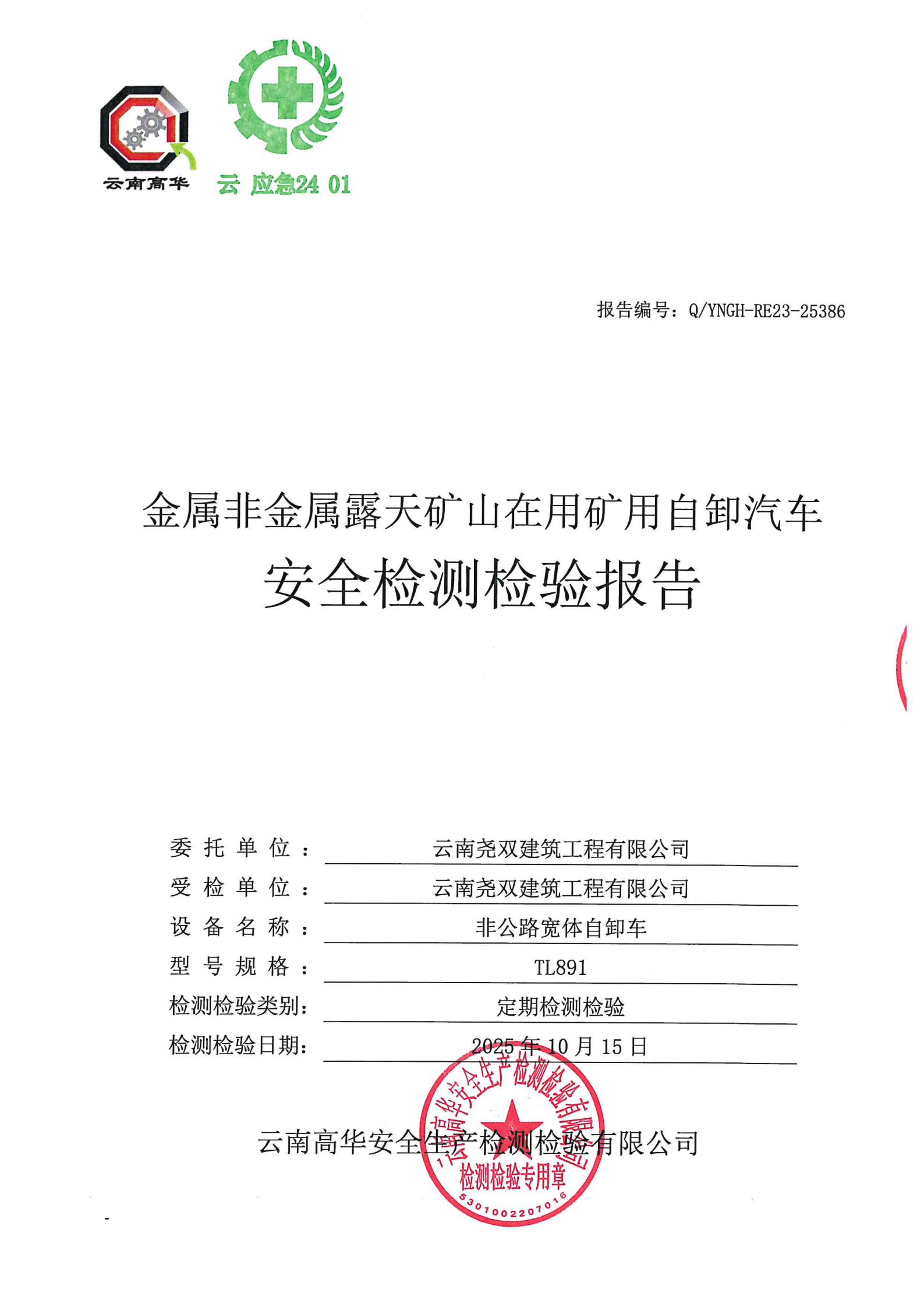金属非金属露天矿山在用矿用自卸汽车安全检测检验报告