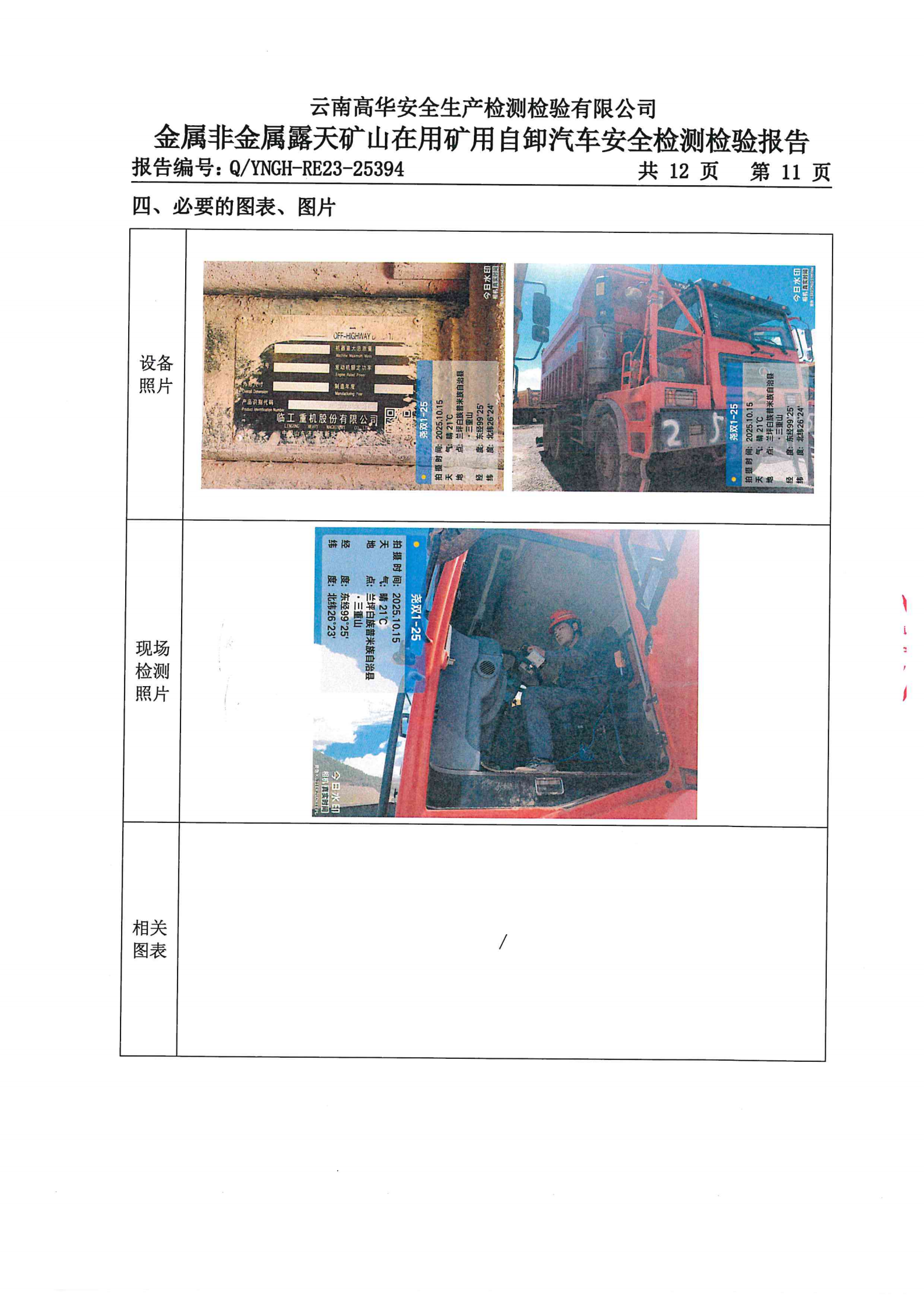 金属非金属露天矿山在用矿用自卸汽车安全检测检验报告