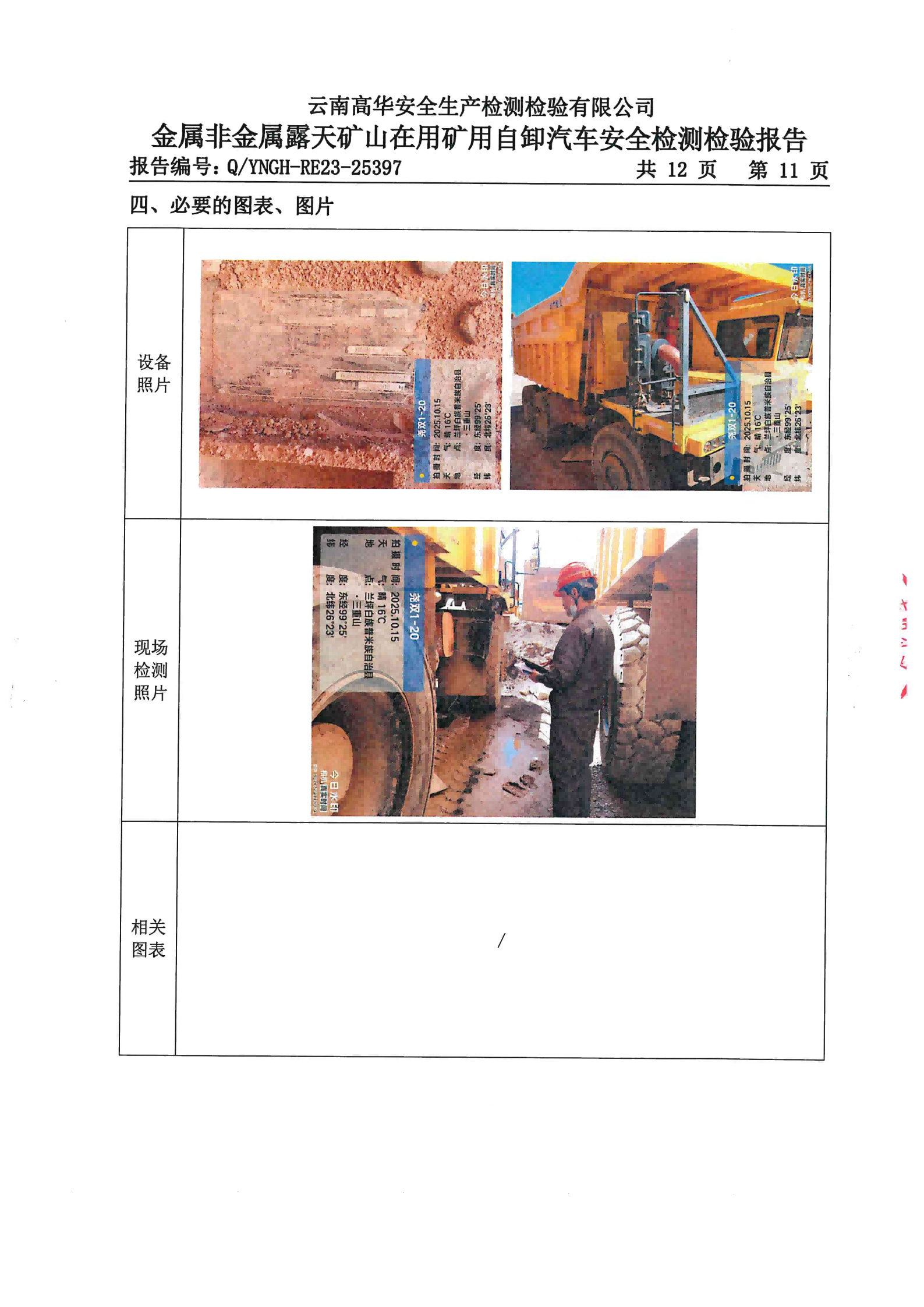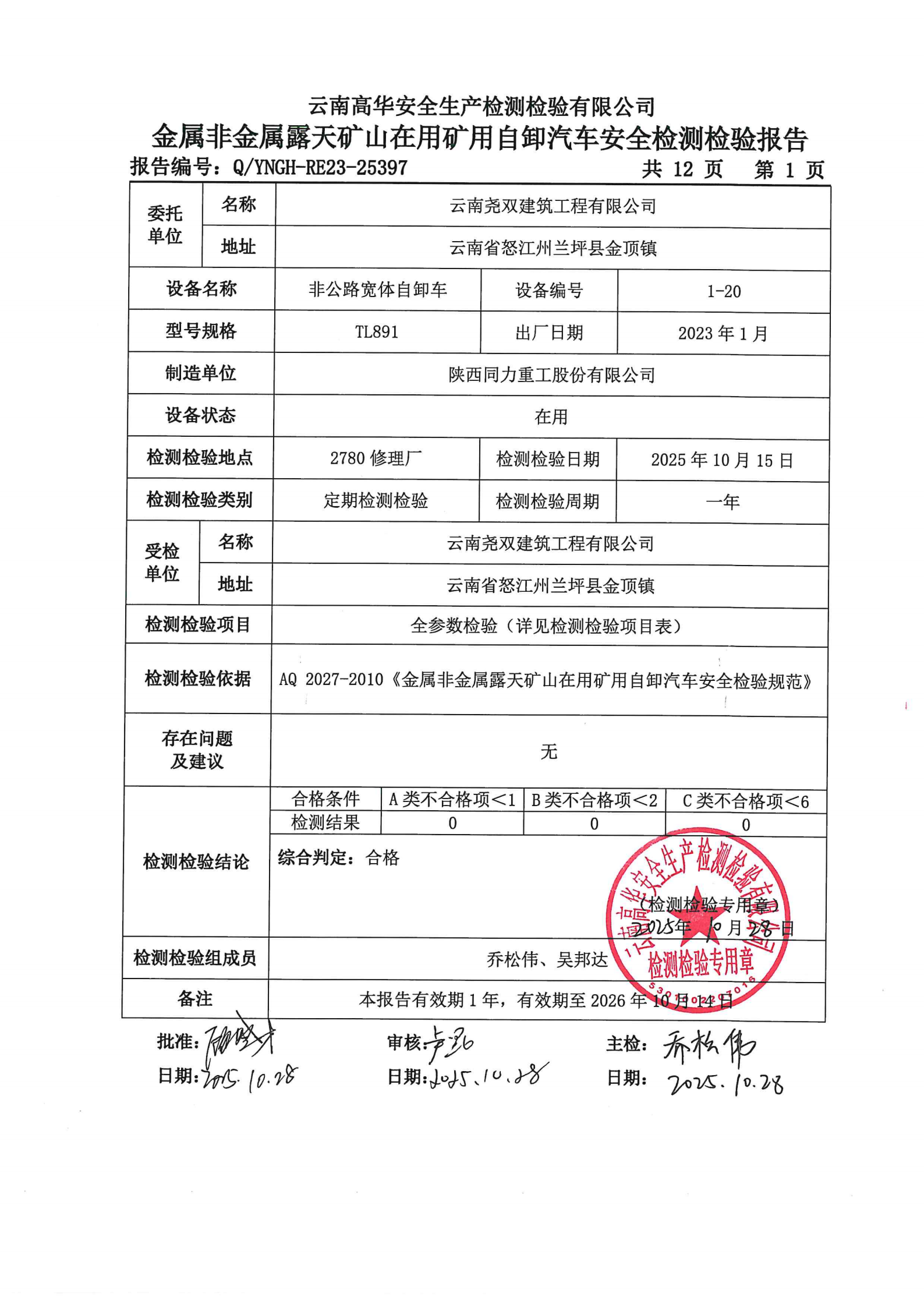 金属非金属露天矿山在用矿用自卸汽车安全检测检验报告