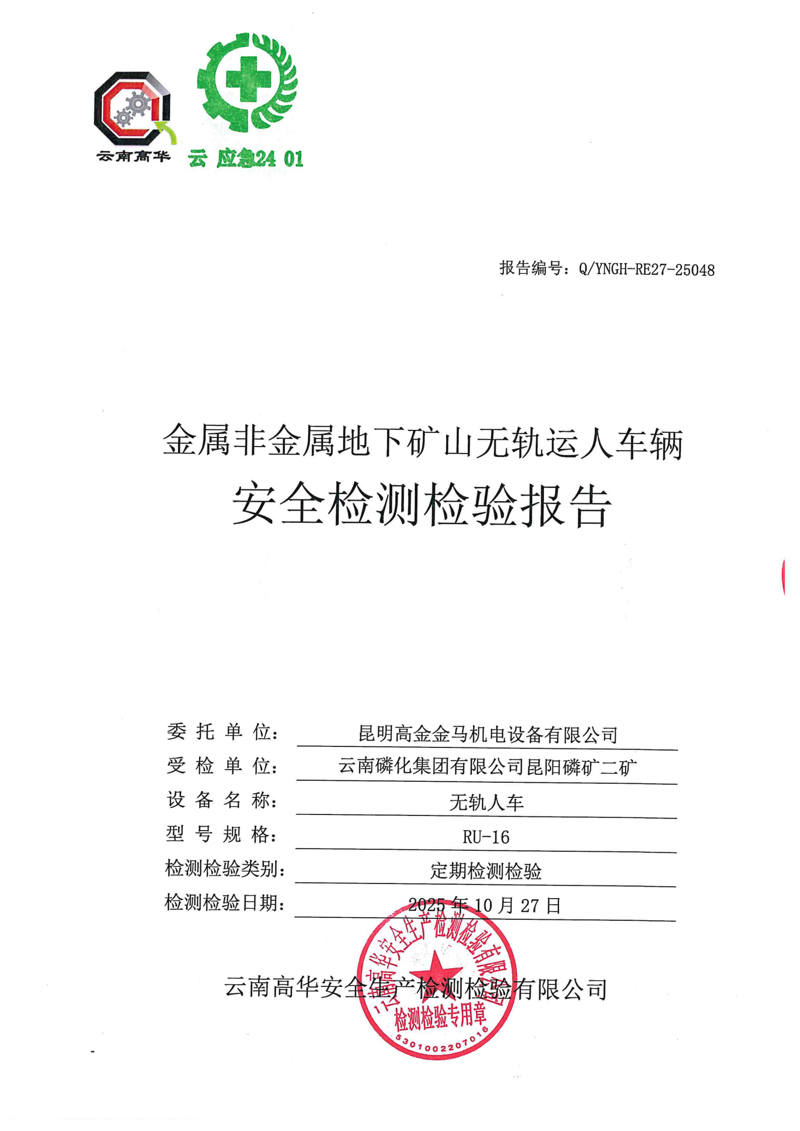 金属非金属地下矿山无轨运人车辆安全检测检验报告