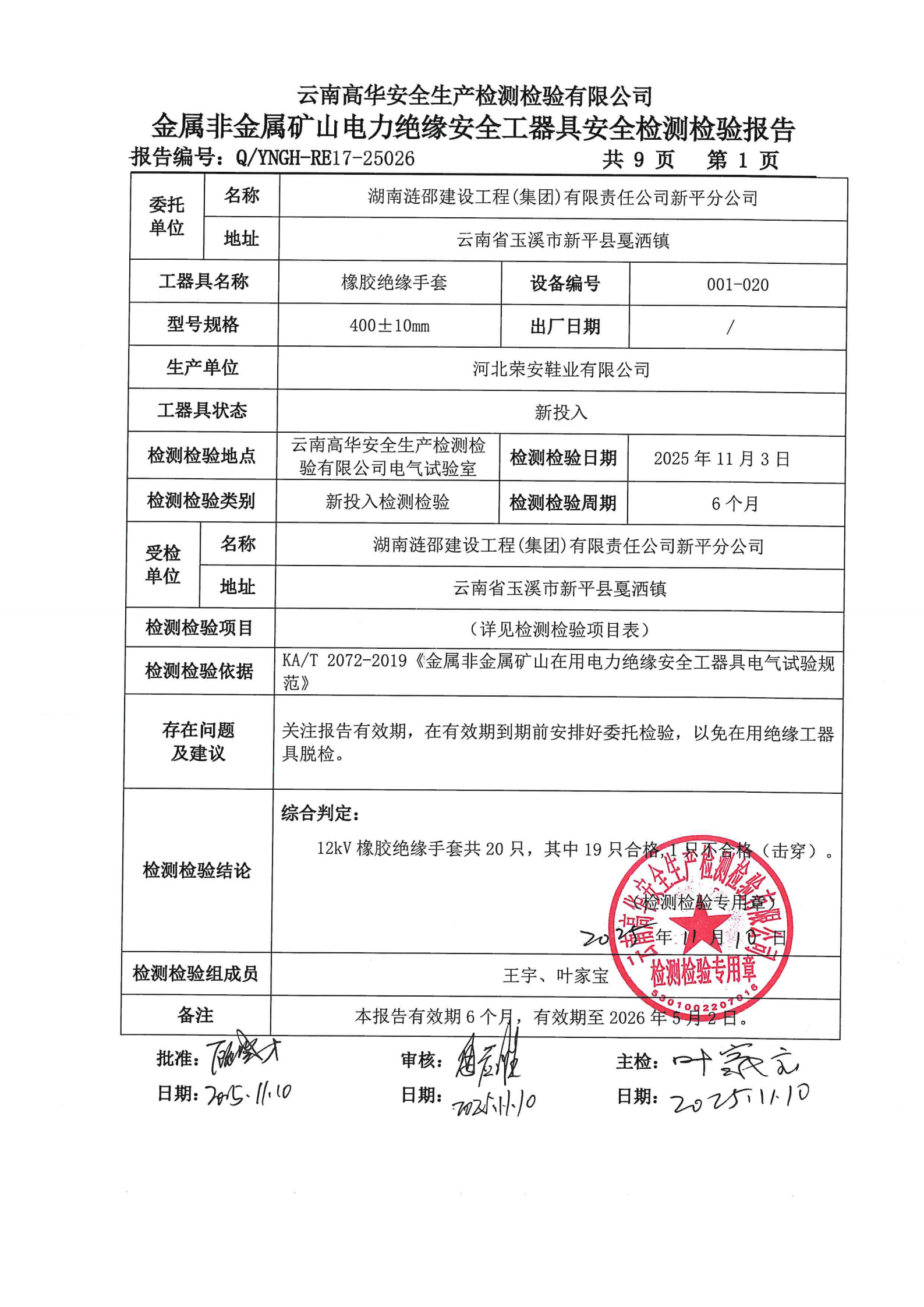 金属非金属矿山电力绝缘安全工器具安全检测检验报告