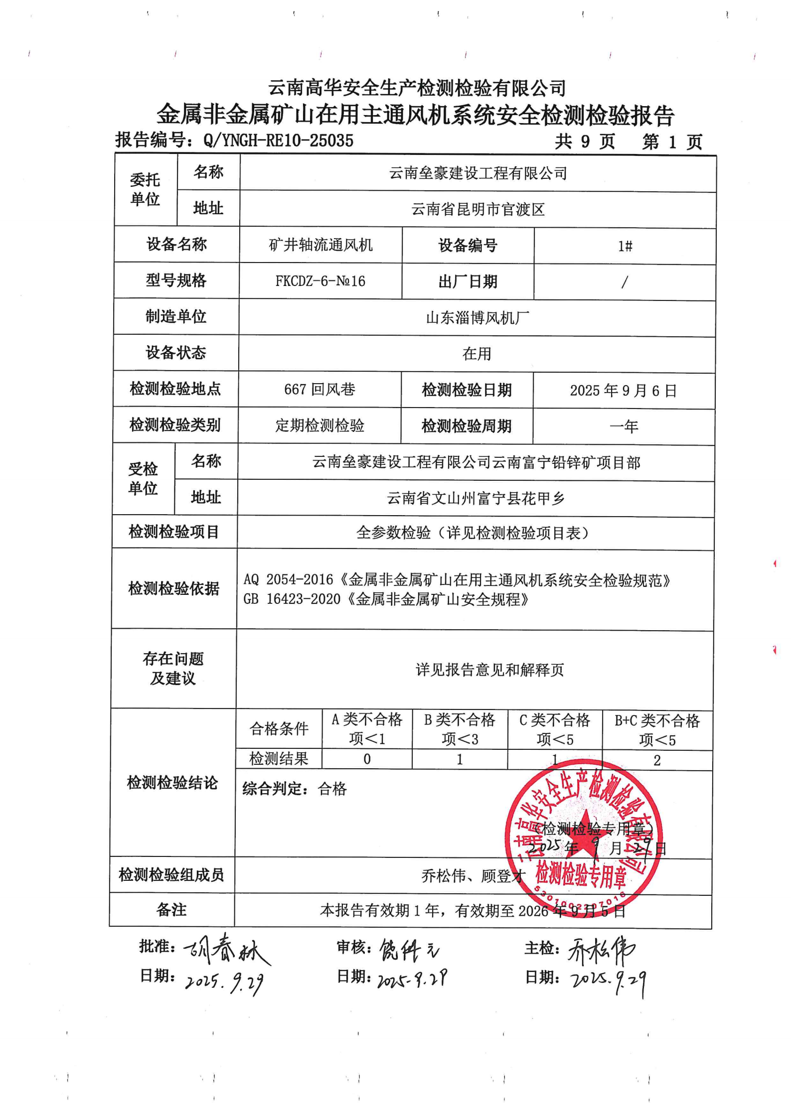 金属非金属矿山在用主通风机系统安全检测检验报告