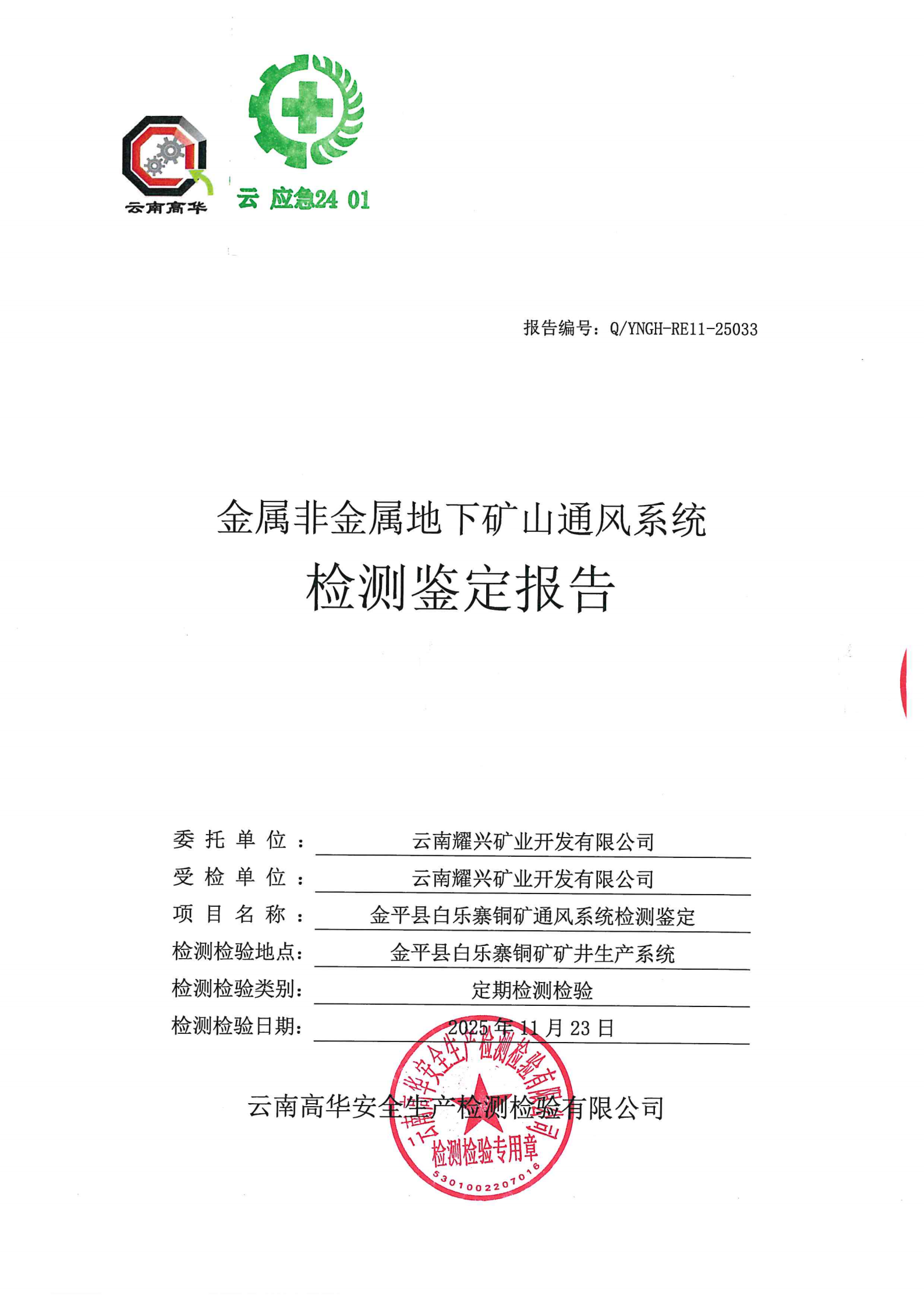 金属非金属矿山在用主通风机系统安全检测检验报告