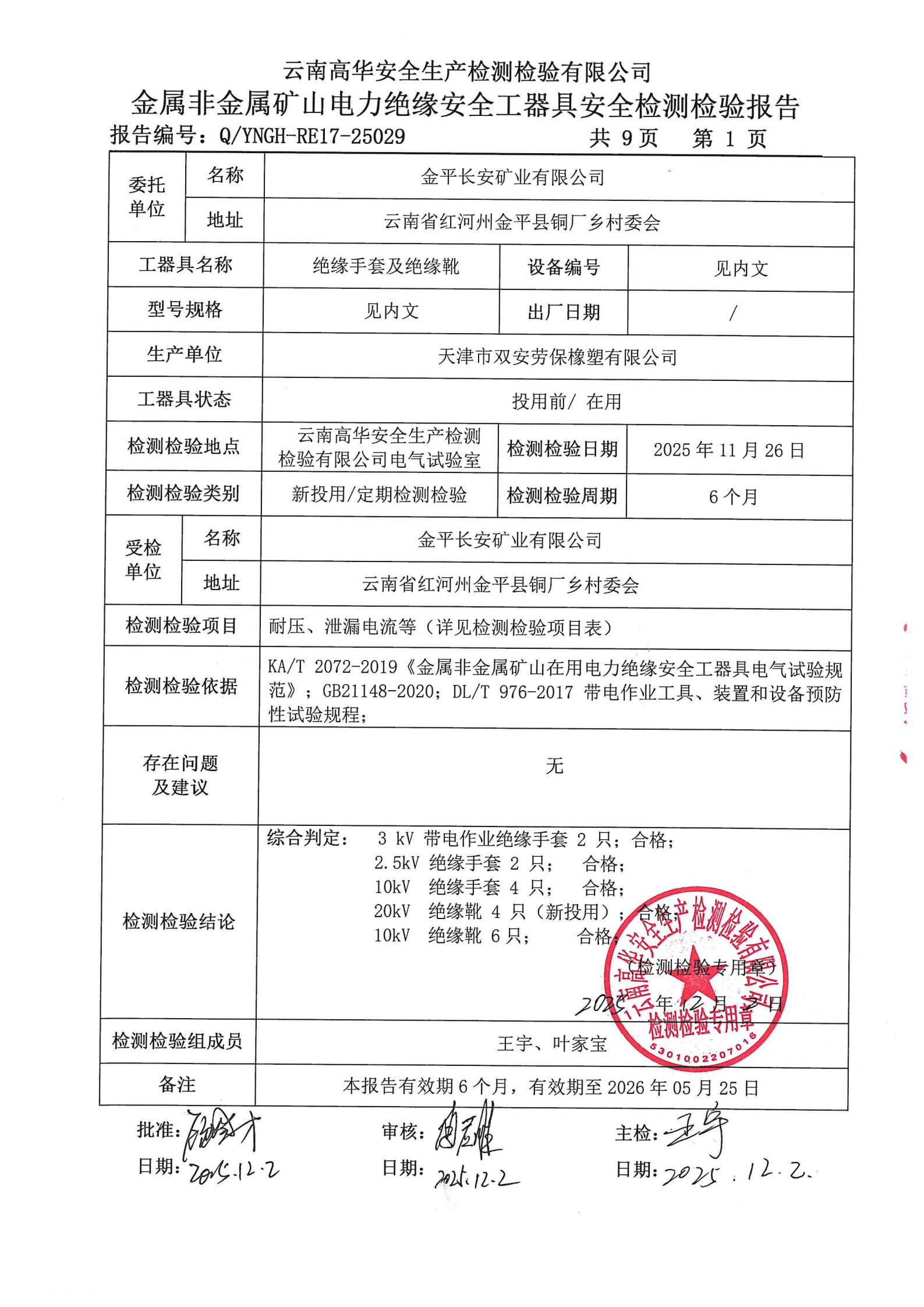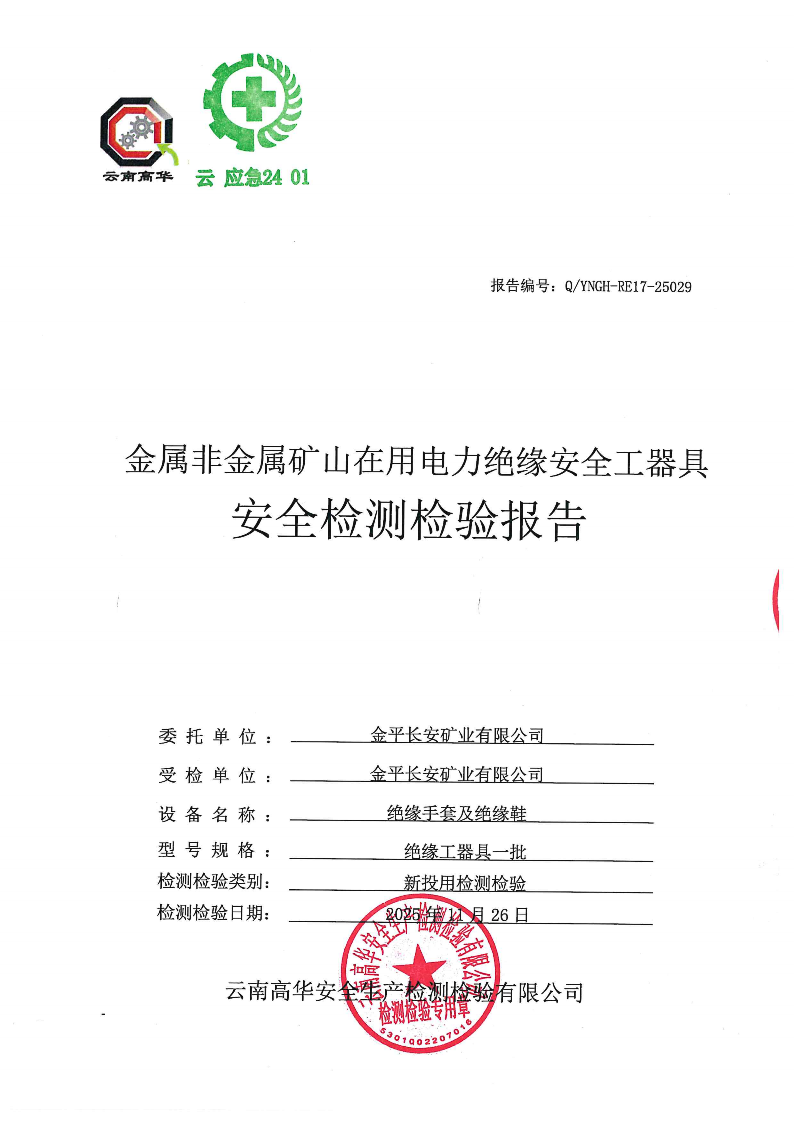 金属非金属矿山在用电力绝缘安全工器具安全检测检验报告