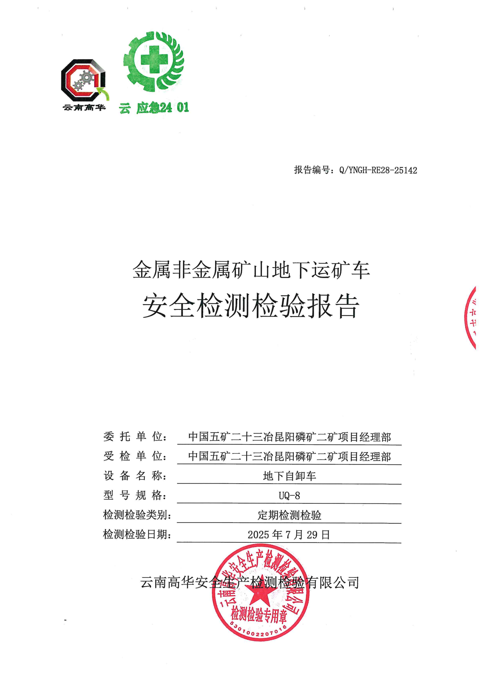 金属非金属矿山在用矿用自卸汽车安全检测检验报告