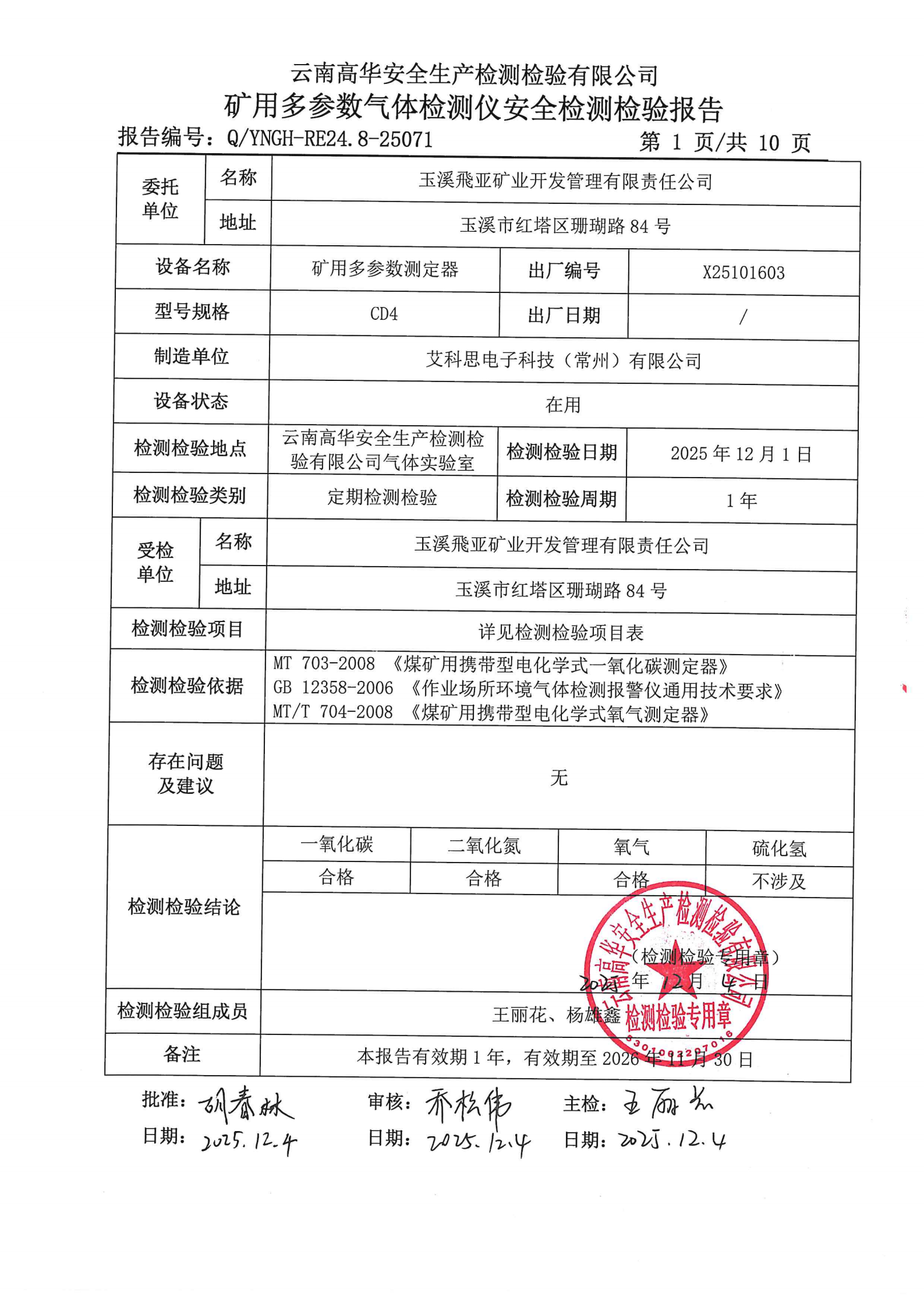 矿用多参数气体检测仪安全检测检验报告