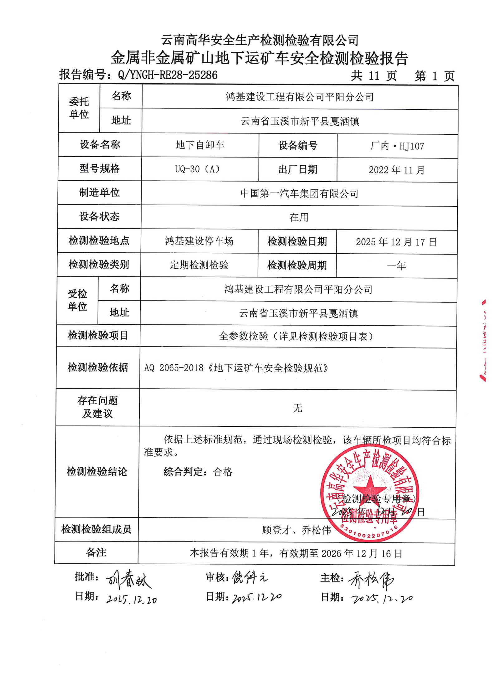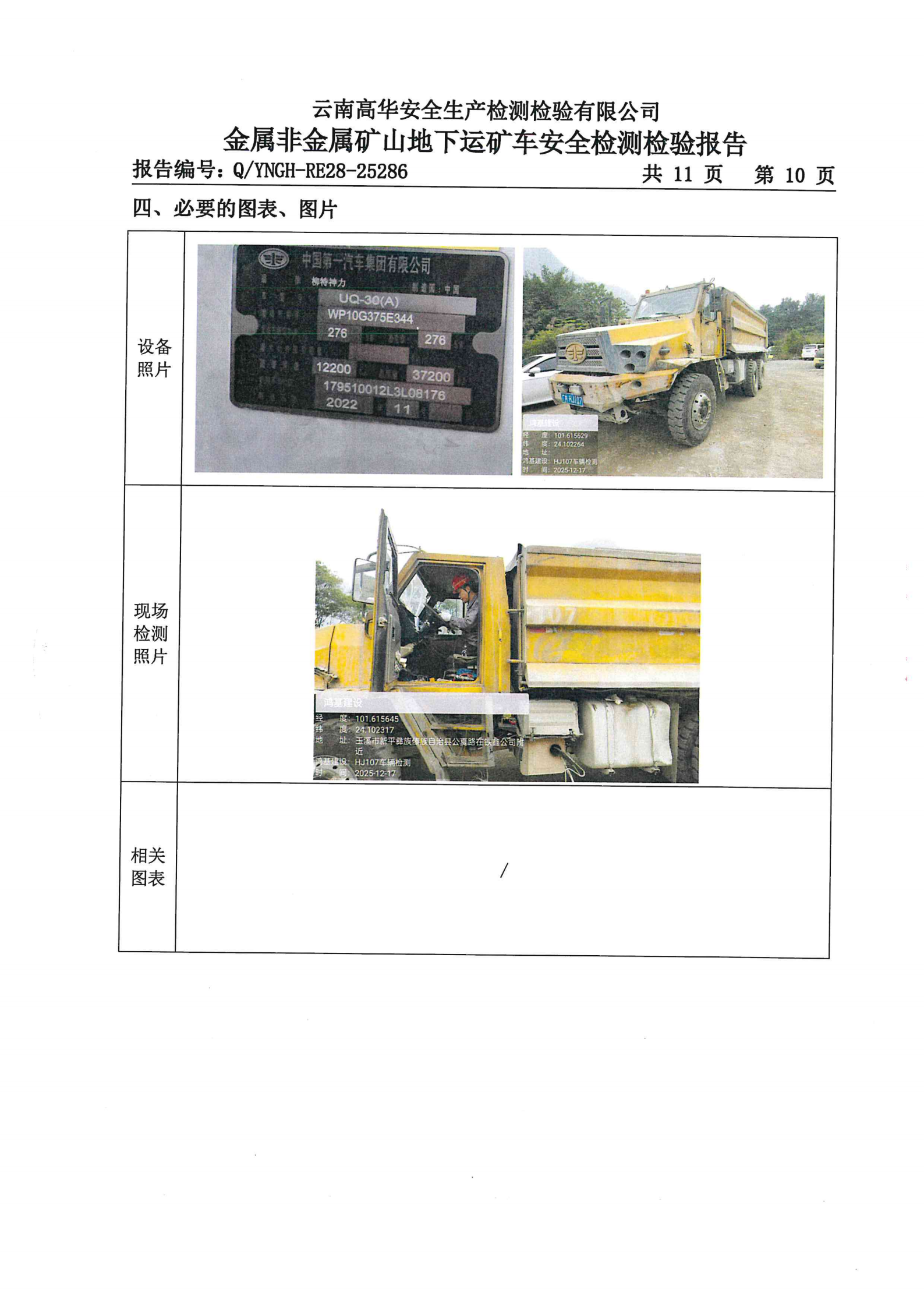 金属非金属矿山在用矿用自卸汽车安全检测检验报告