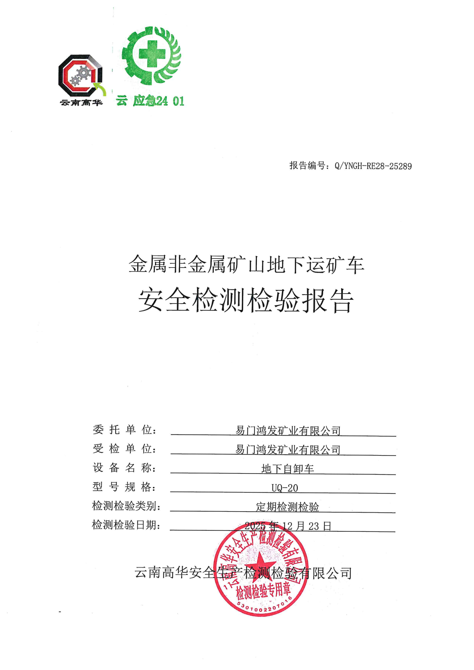 金属非金属矿山在用矿用自卸汽车安全检测检验报告