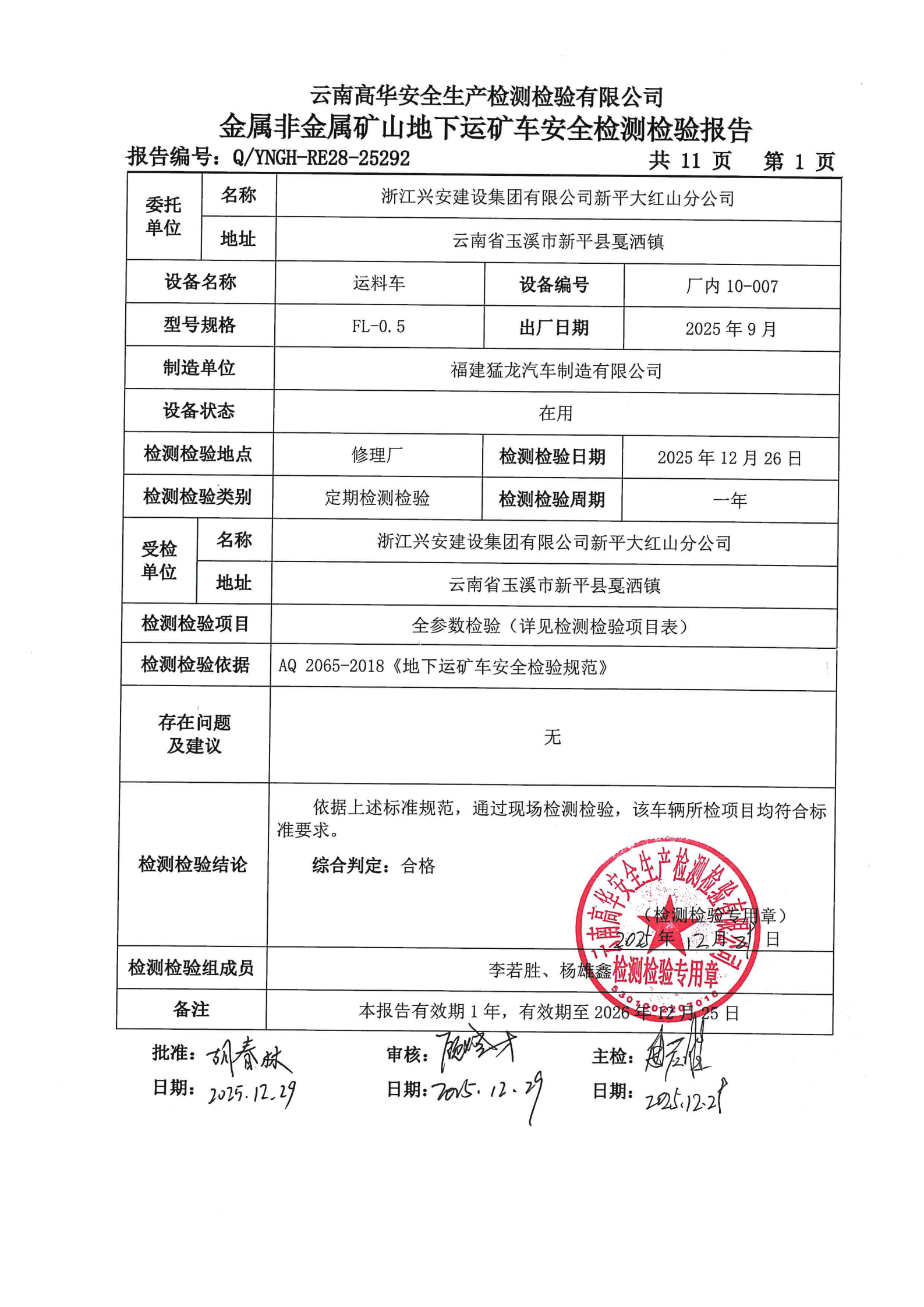 金属非金属矿山在用矿用自卸汽车安全检测检验报告