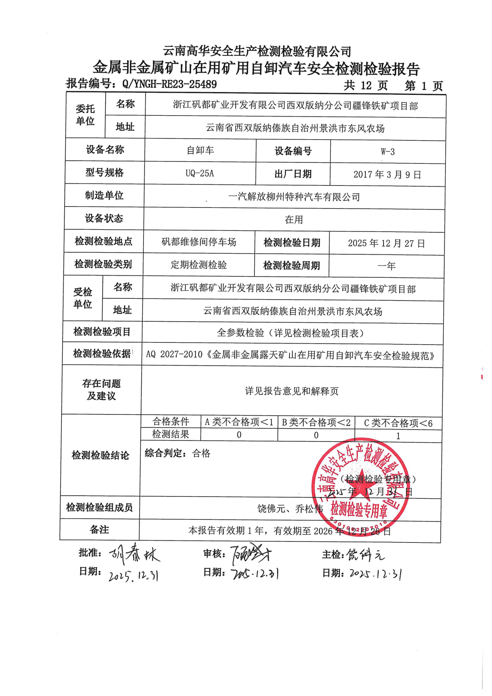 金属非金属矿山在用矿用自卸汽车安全检测检验报告