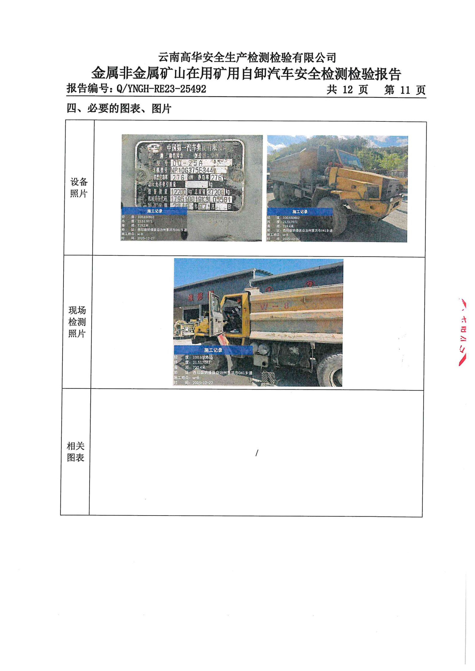 金属非金属矿山在用矿用自卸汽车安全检测检验报告