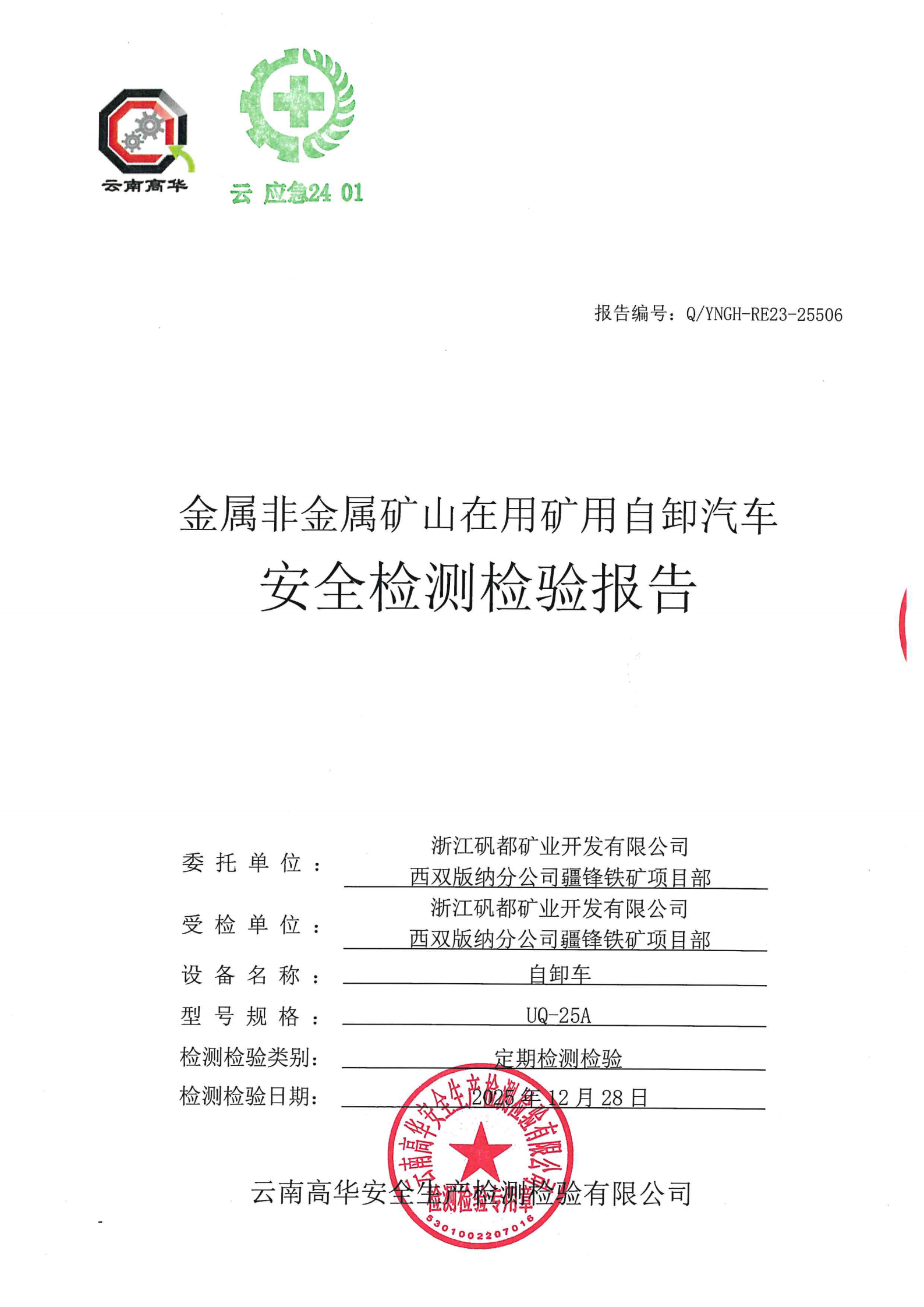 金属非金属矿山在用矿用自卸汽车安全检测检验报告
