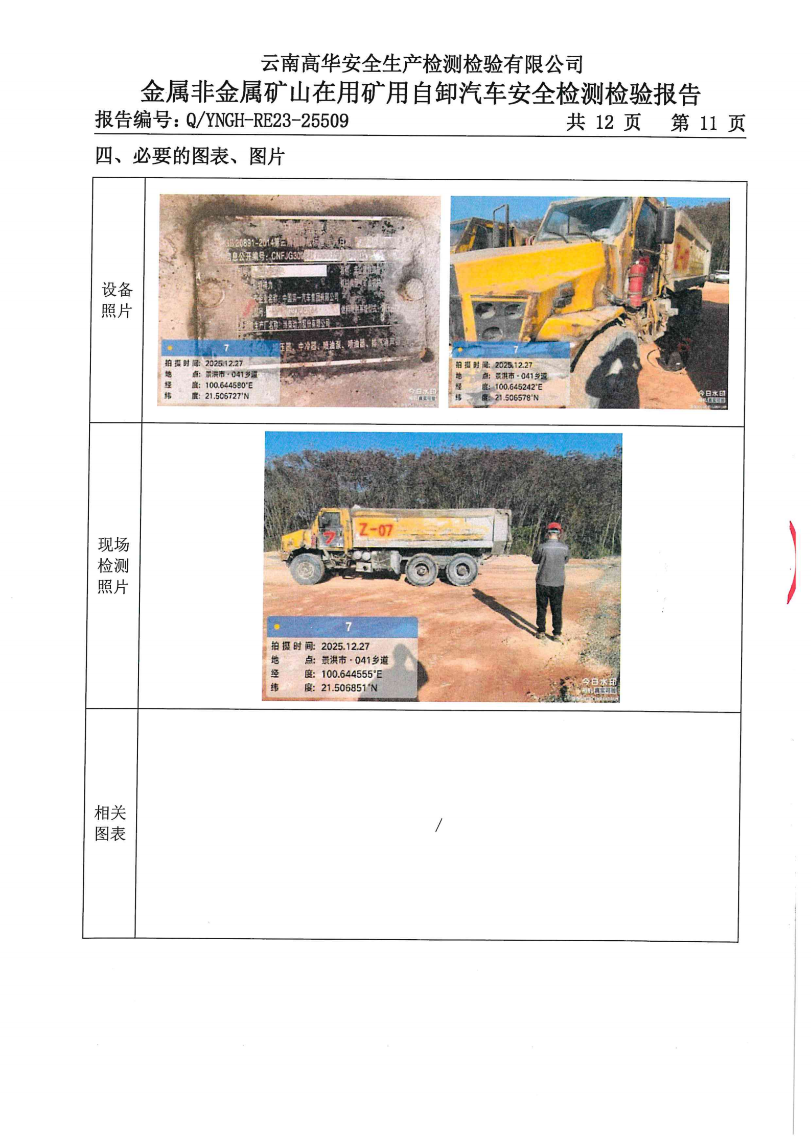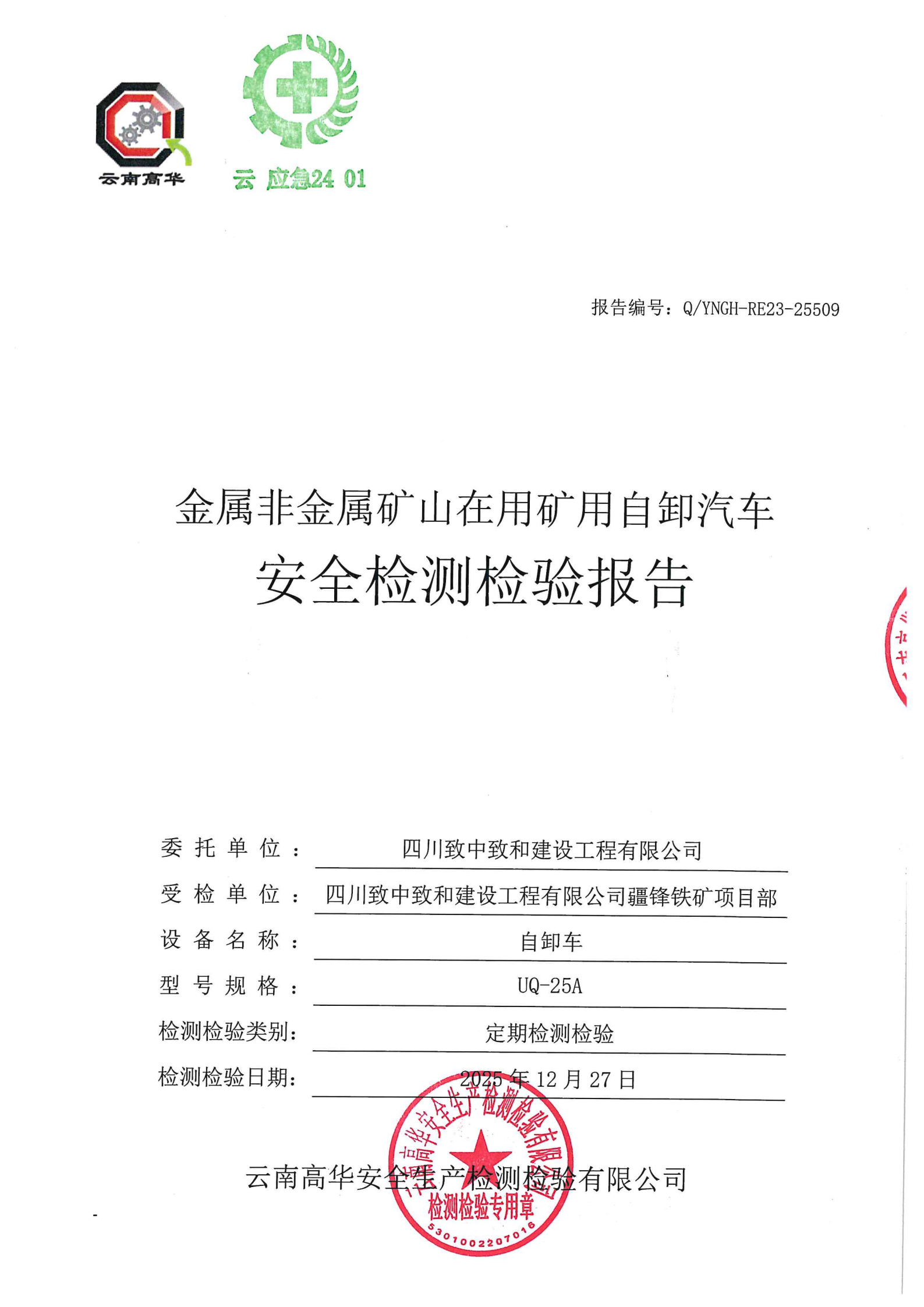 金属非金属矿山在用矿用自卸汽车安全检测检验报告
