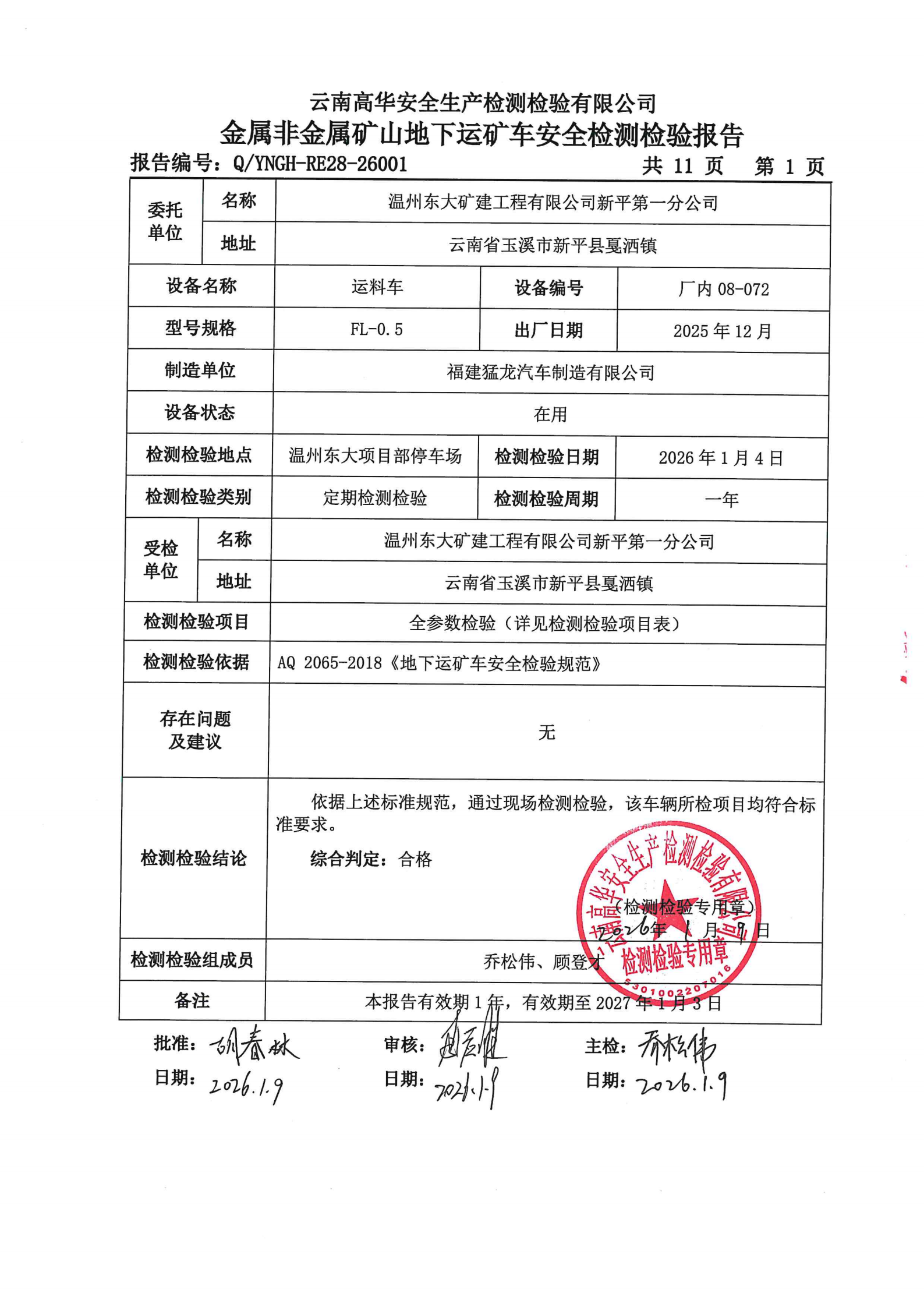 金属非金属矿山在用矿用自卸汽车安全检测检验报告