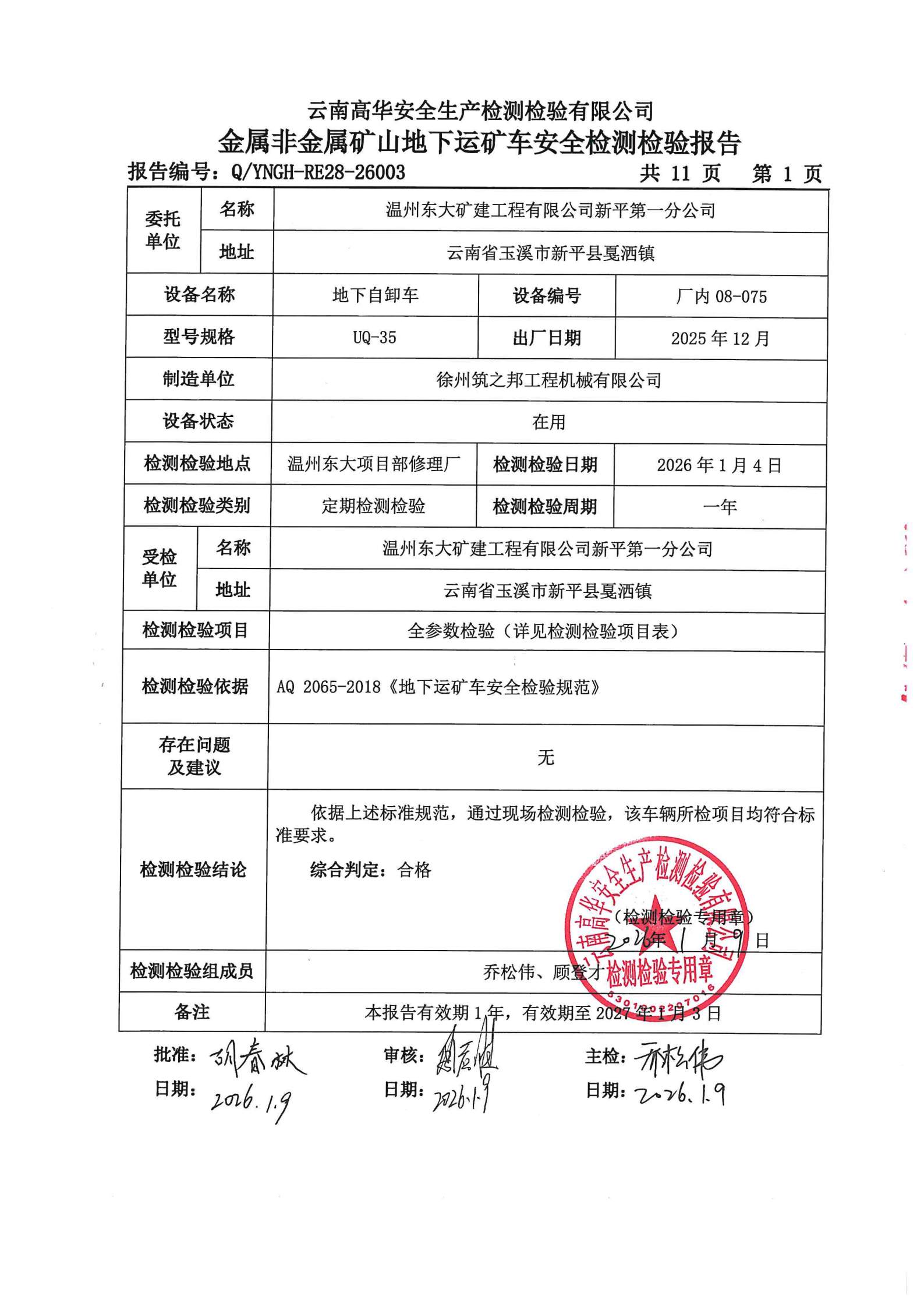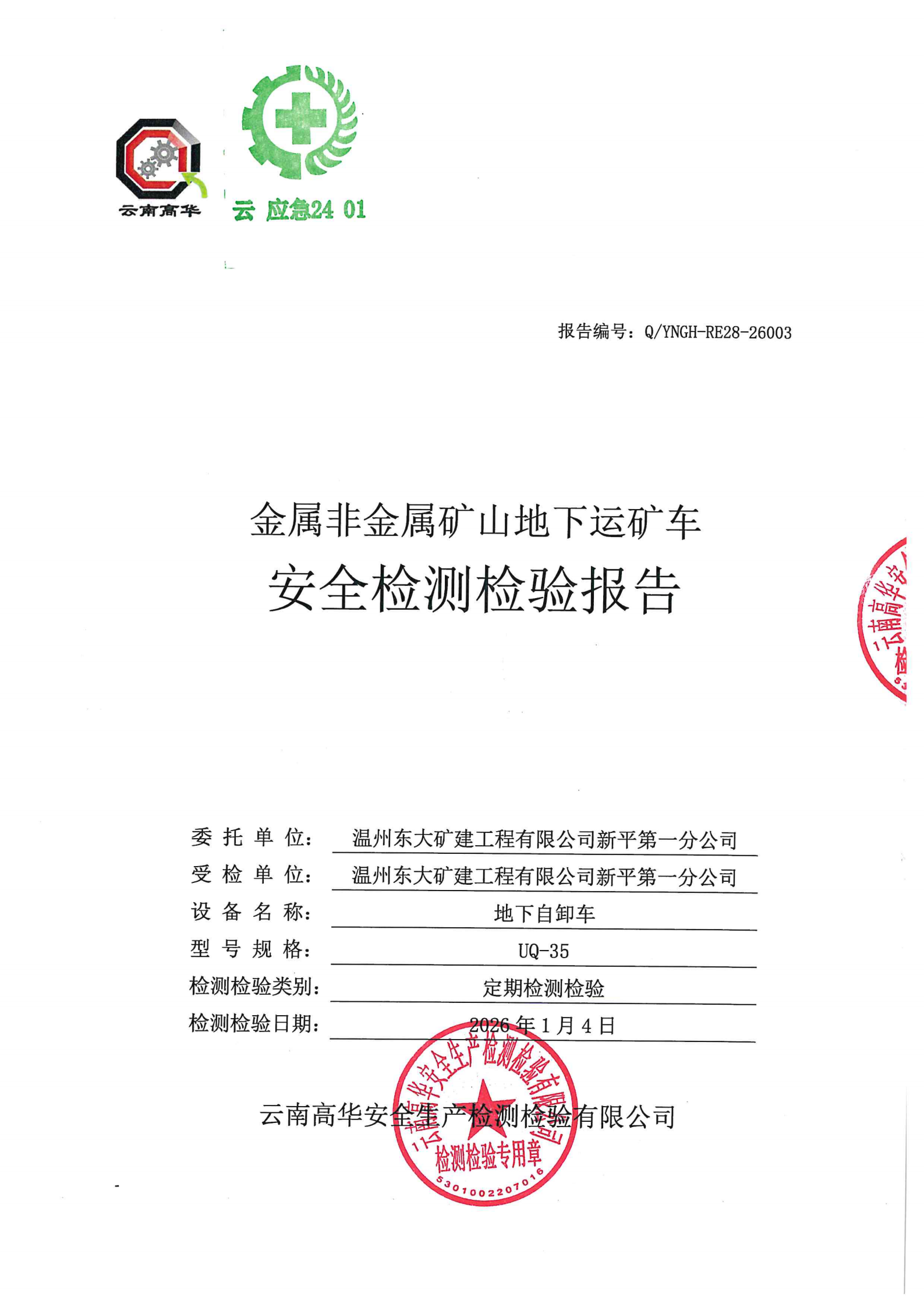 金属非金属矿山在用矿用自卸汽车安全检测检验报告