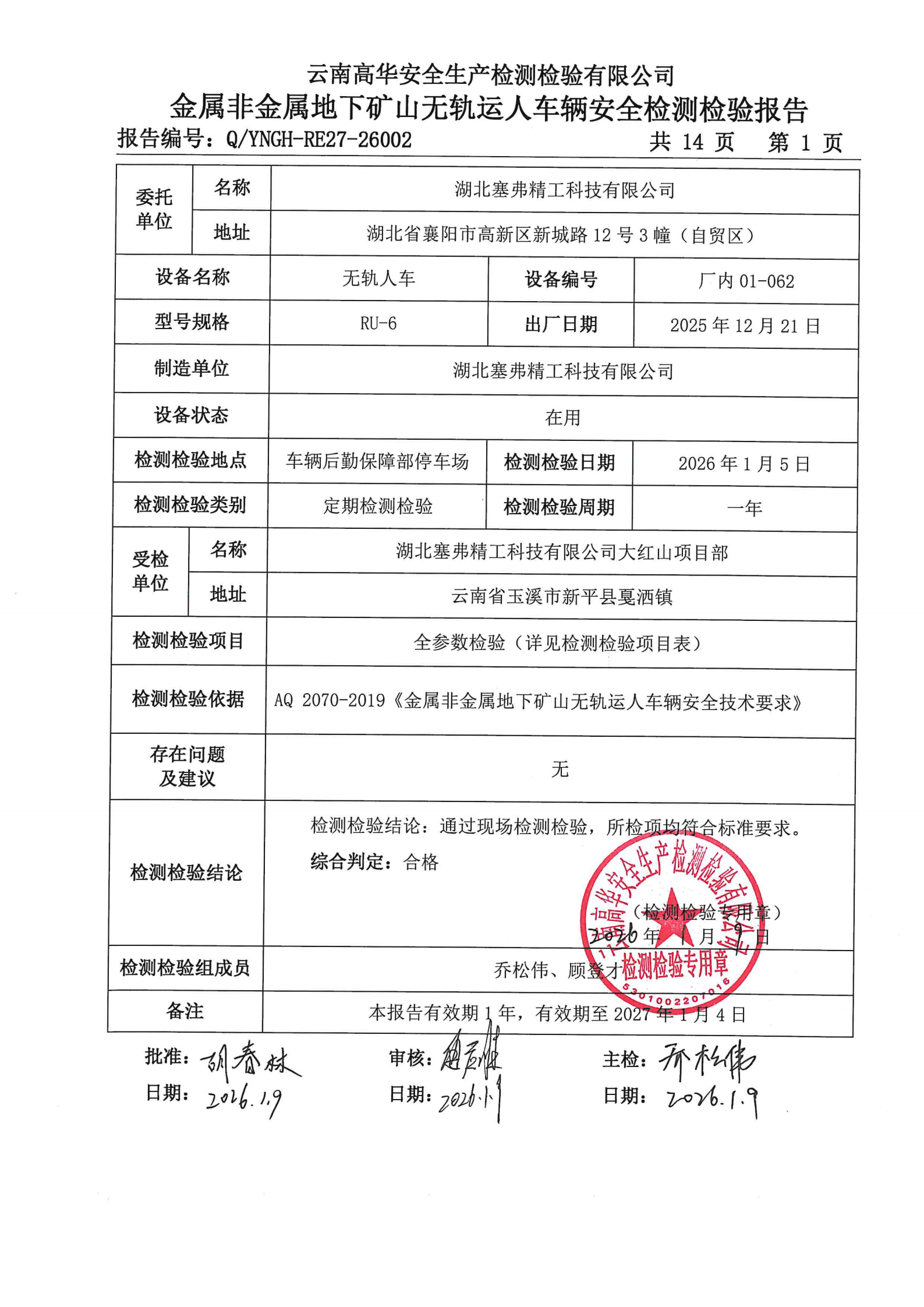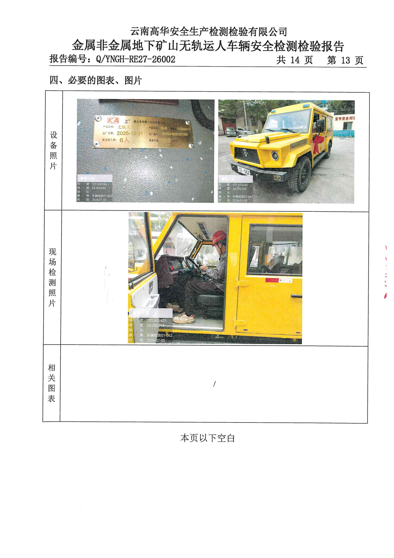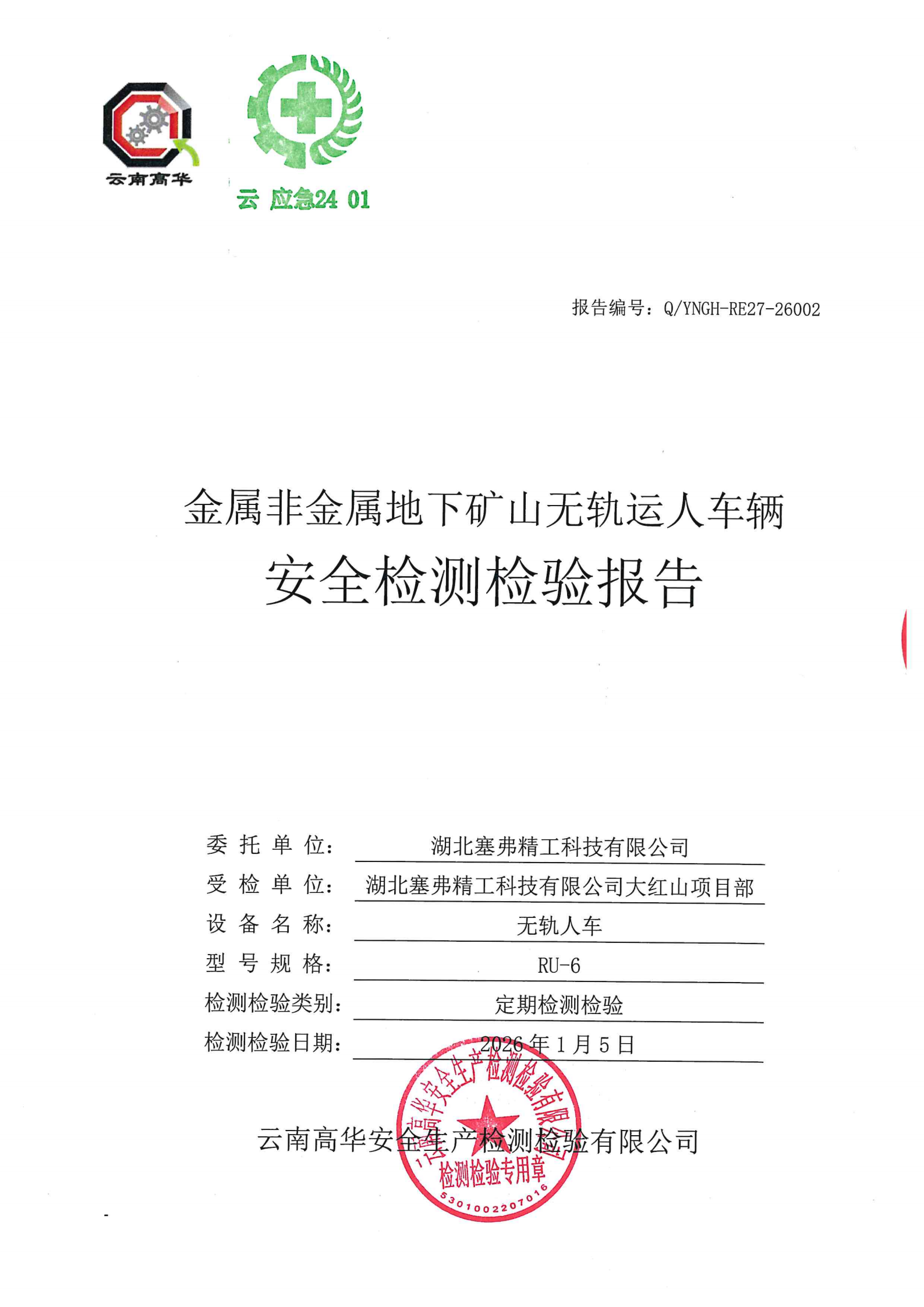 金属非金属地下矿山无轨运人车辆安全检测检验报告