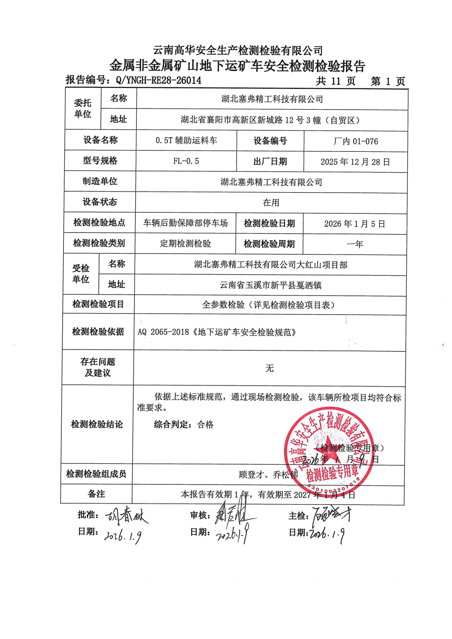 金属非金属矿山在用矿用自卸汽车安全检测检验报告
