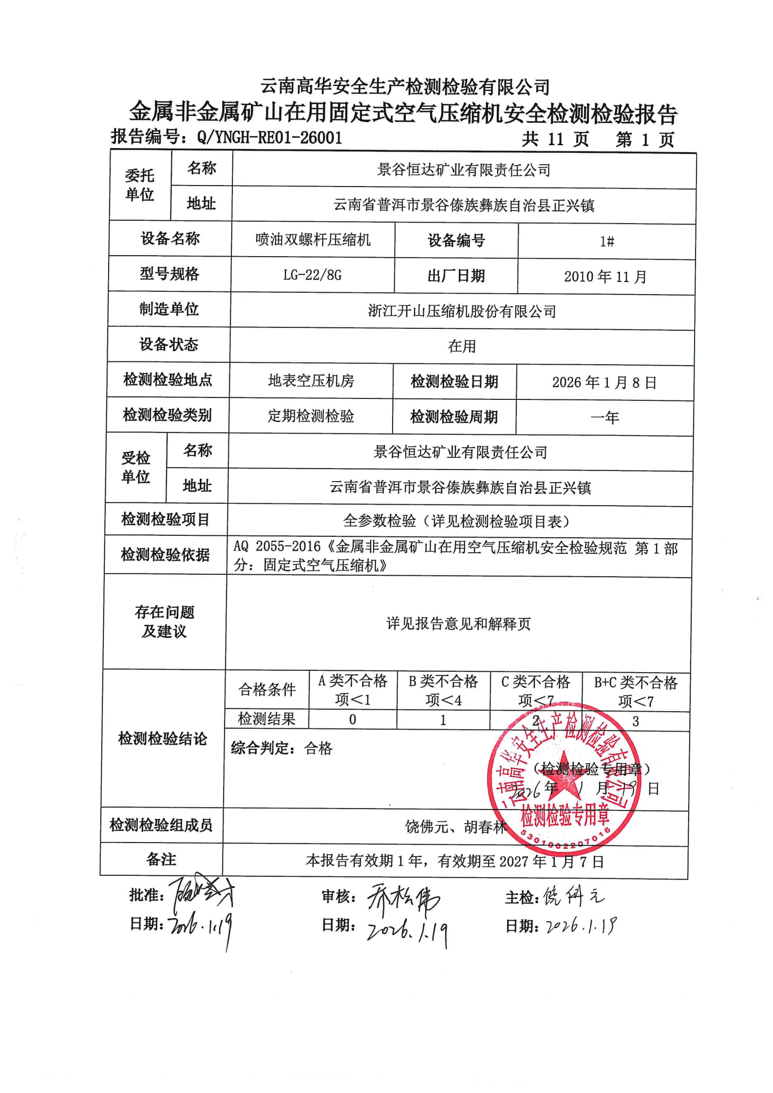 金属非金属矿山在用固定式空气压缩机安全检测检验报告