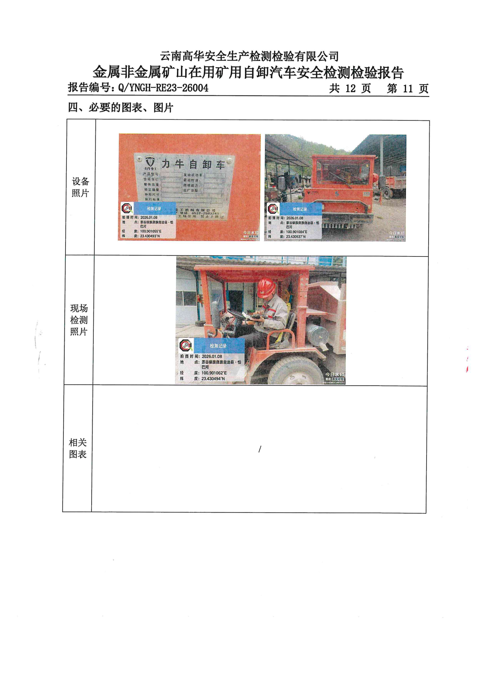 金属非金属矿山在用矿用自卸汽车安全检测检验报告