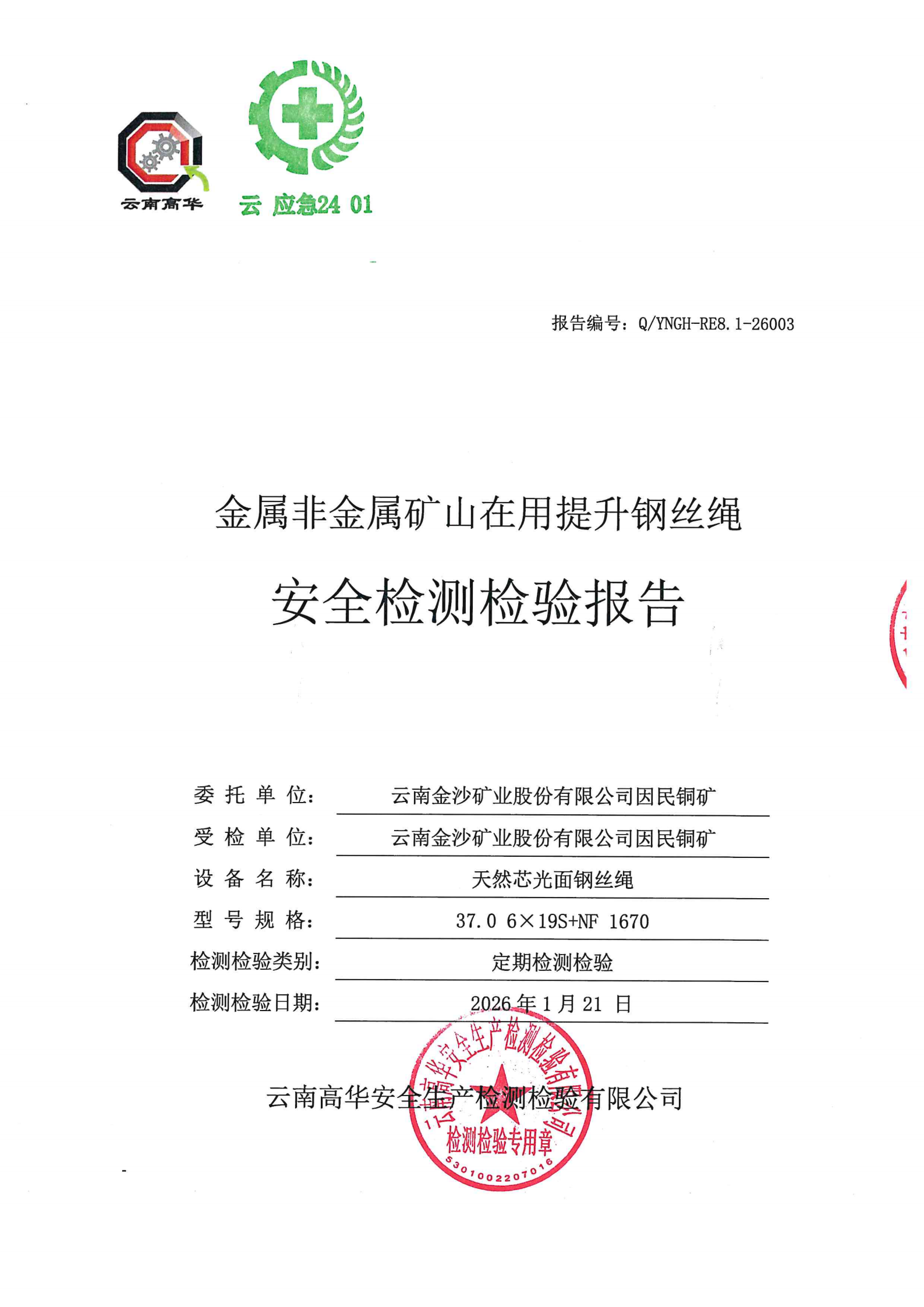 金属非金属矿山在用提升钢丝绳安全检测检验报告