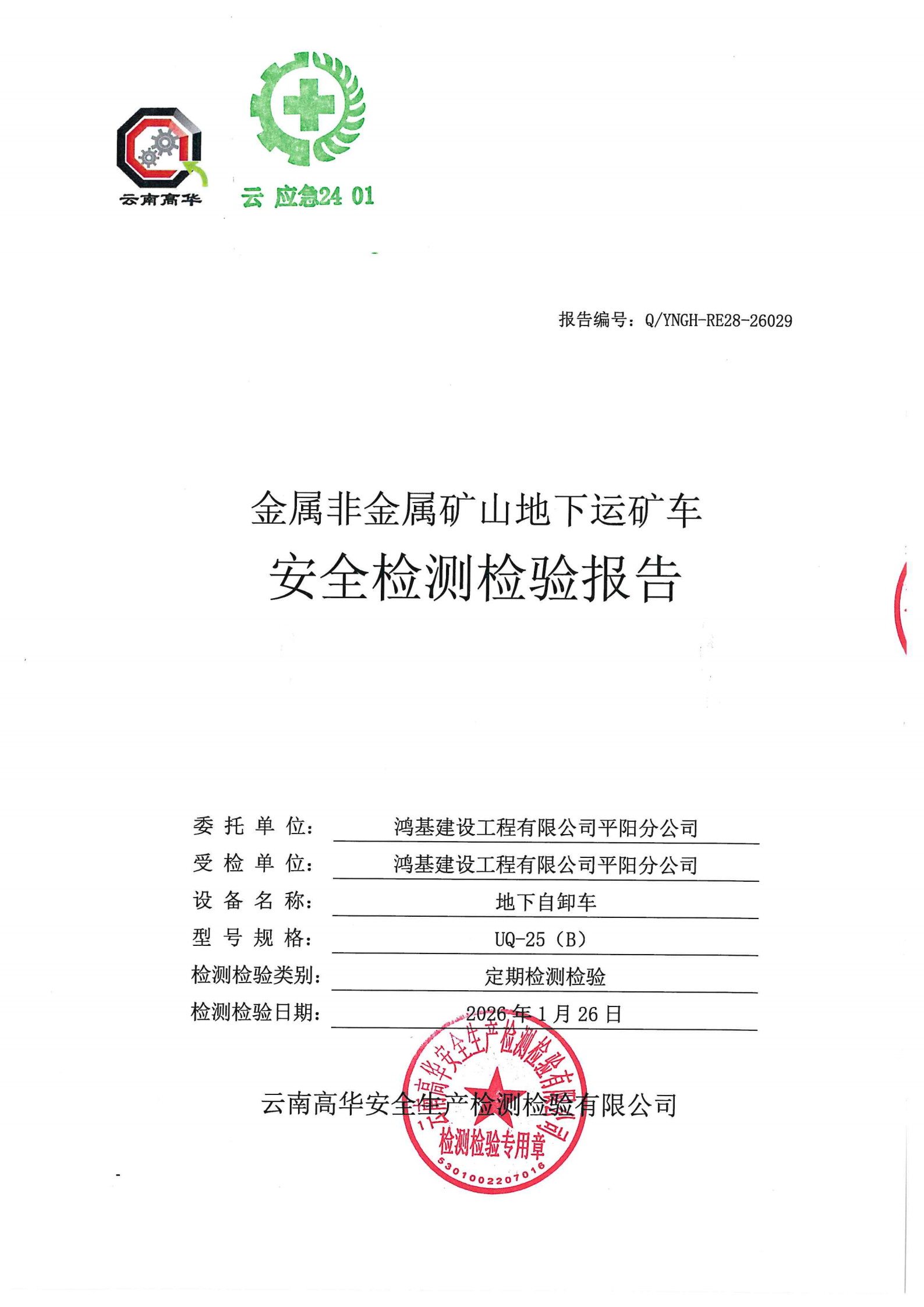 金属非金属矿山地下运矿车安全检测检验报告