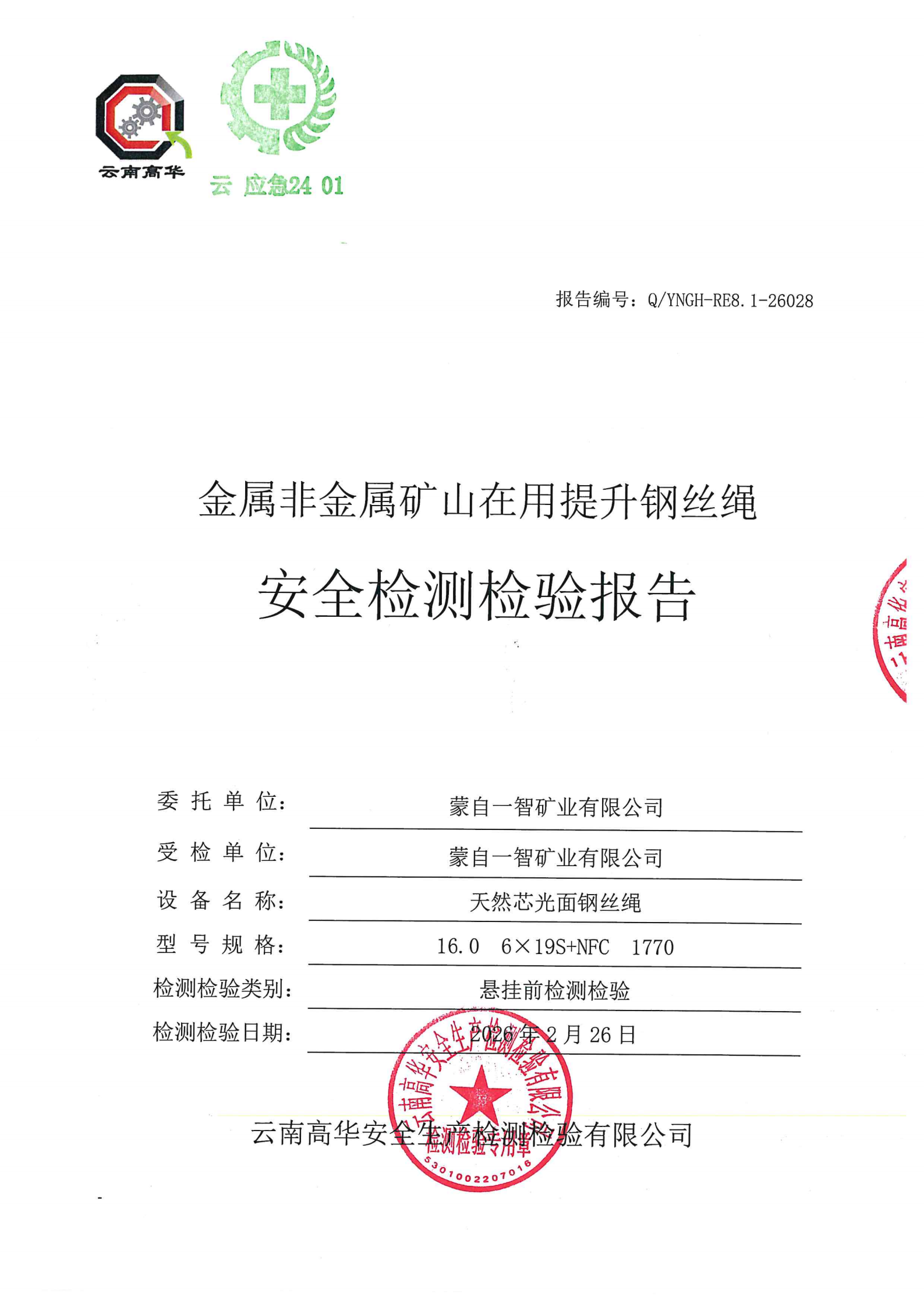金属非金属矿山在用提升钢丝绳安全检测检验报告