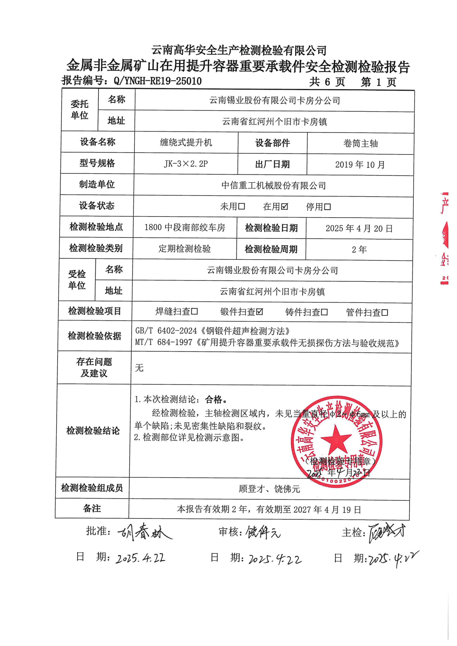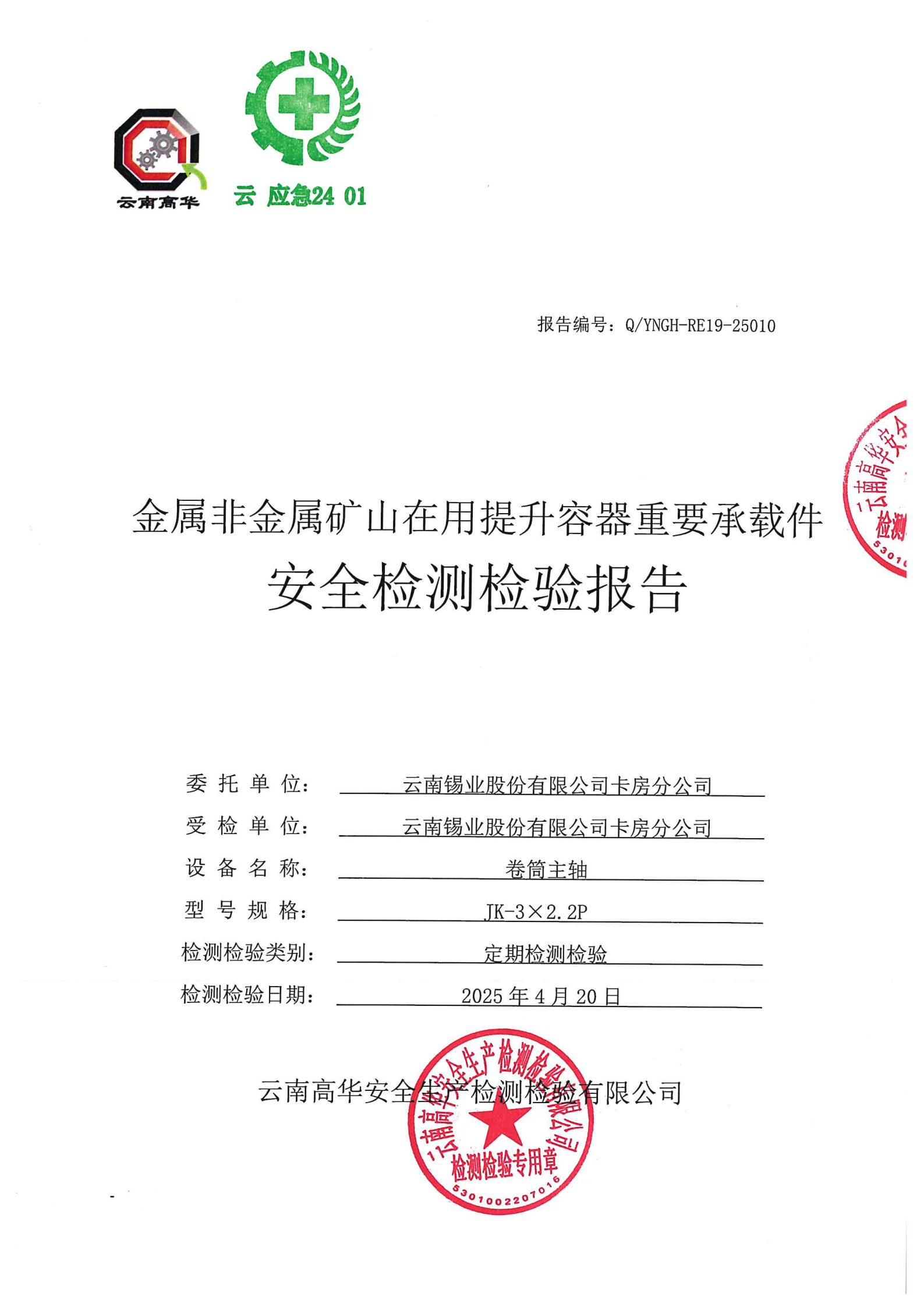 金属非金属矿山在用提升容器重要承载件安全检测检验报告