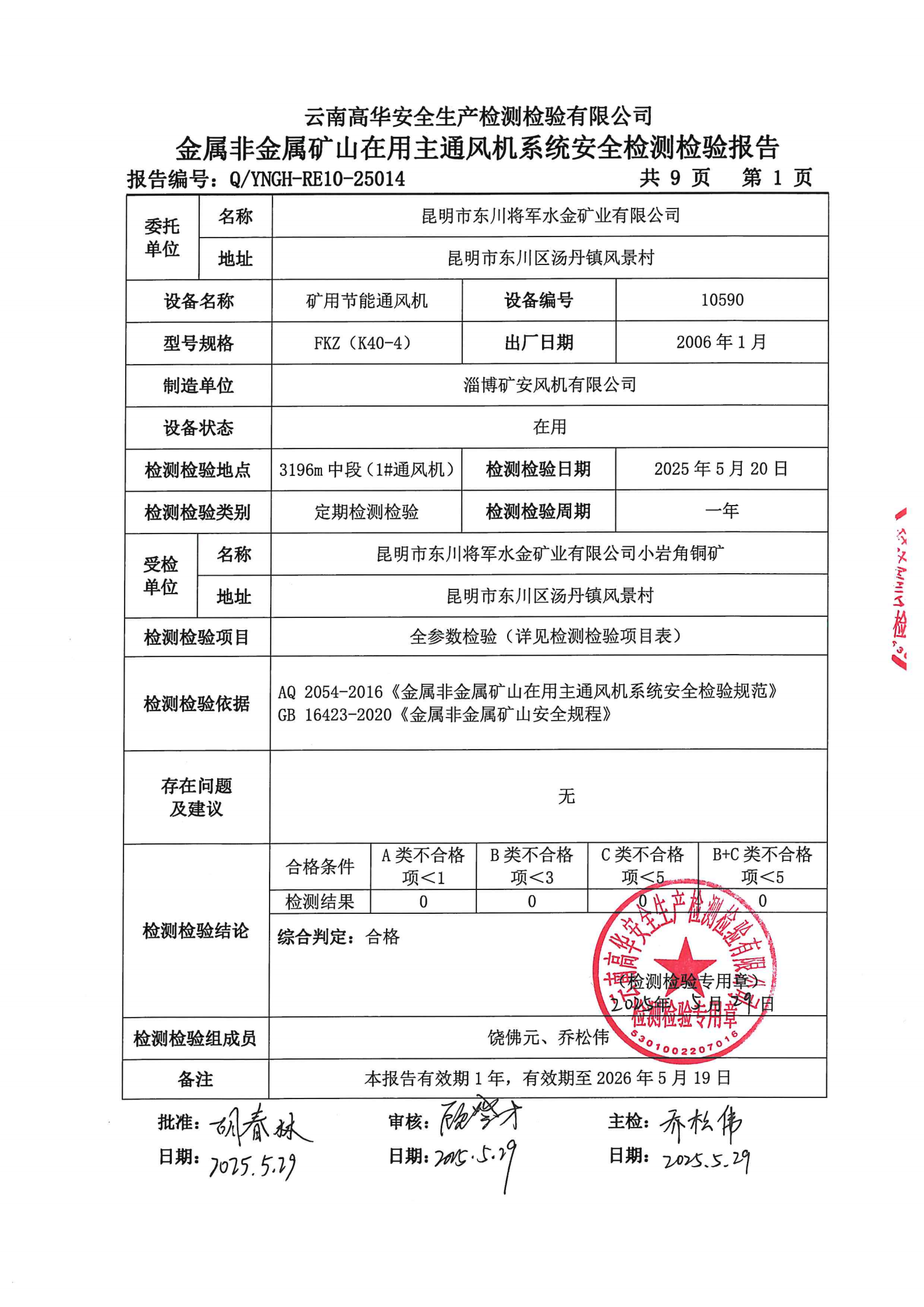 金属非金属矿山在用主通风机系统安全检测检验报告