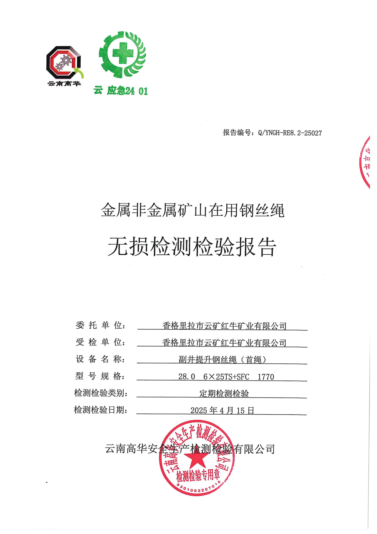 金属非金属矿山在用钢丝绳无损检测检验报告