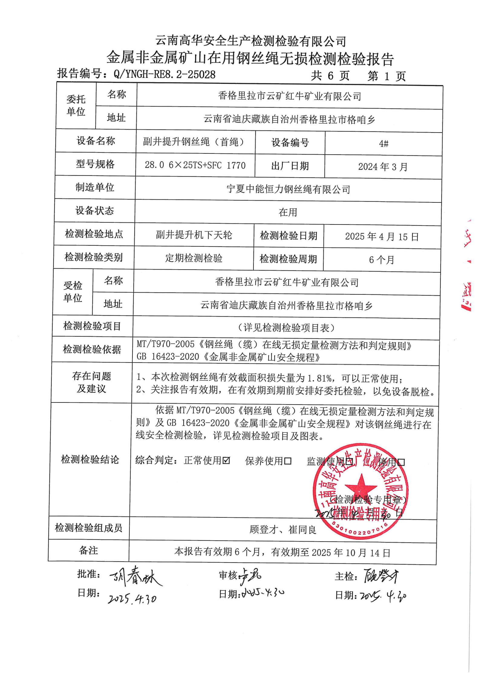金属非金属矿山在用钢丝绳无损检测检验报告